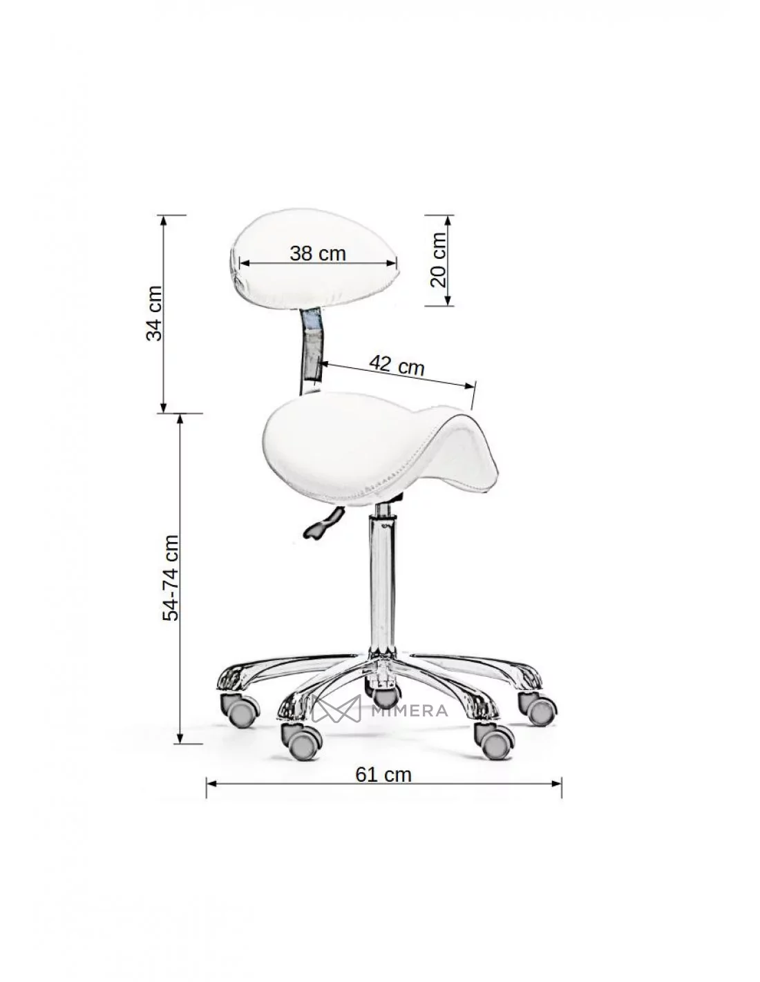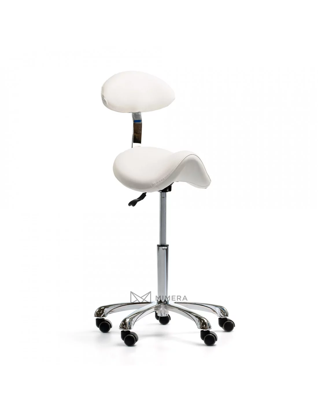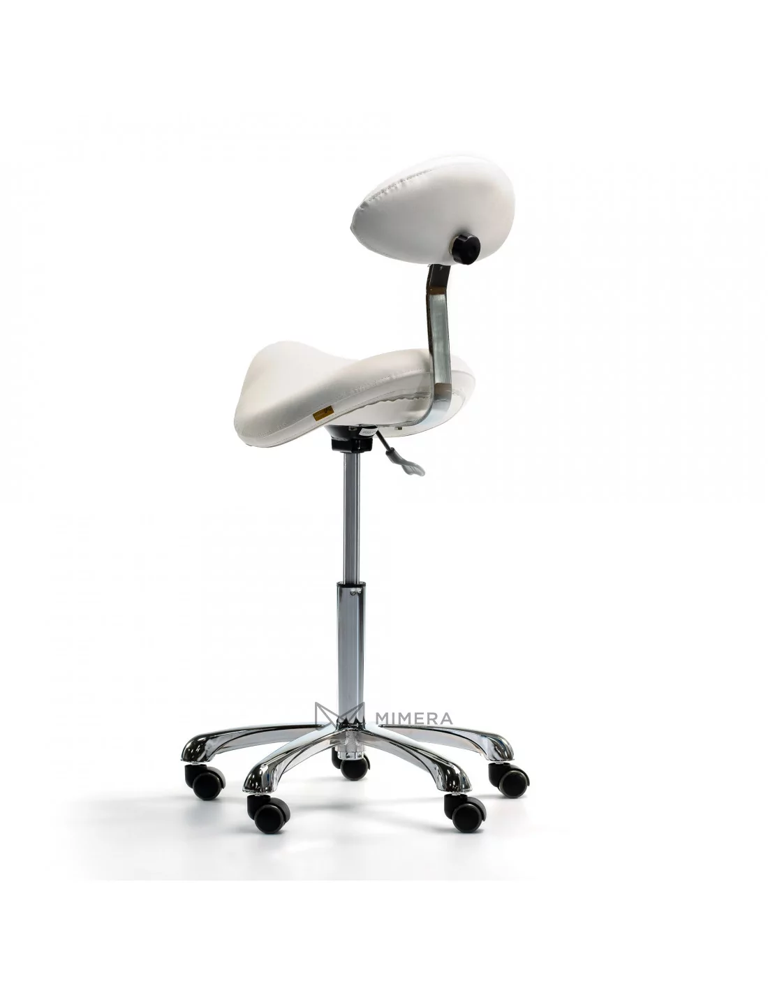 Dieser Sattelstuhl garantiert einen angenehmen Sitzkomfort. Er ist stufenlos höhenverstellbar und hat eine verstellbare Rückenlehne.