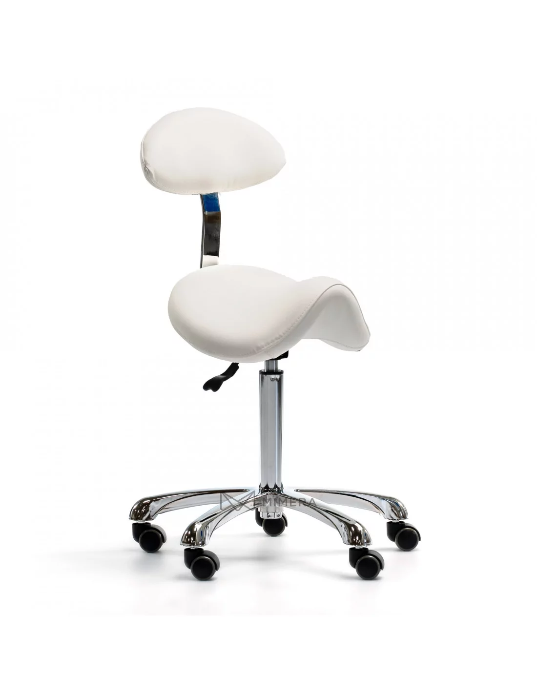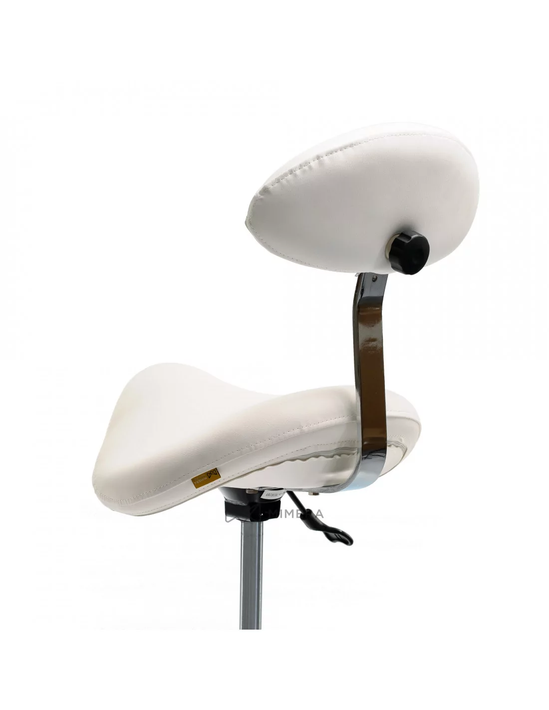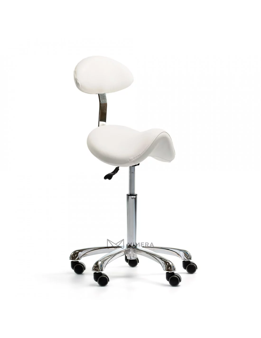 Dieser Sattelstuhl garantiert einen angenehmen Sitzkomfort. Er ist stufenlos höhenverstellbar und hat eine verstellbare Rückenlehne.