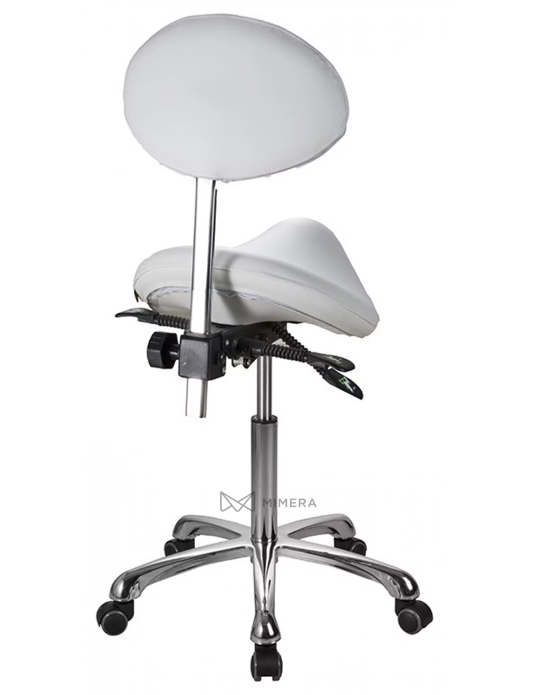 Ein bequemer, ergonomischer Arbeitsstuhl mit Rückenlehne und geformtem Sattelsitz bietet maximalen Komfort bei der Arbeit. Das Sitzen auf einem Sattelstuhl fördert eine aufrechte Haltung, wodurch Muskelverspannungen und Rückenschmerzen reduziert werden.