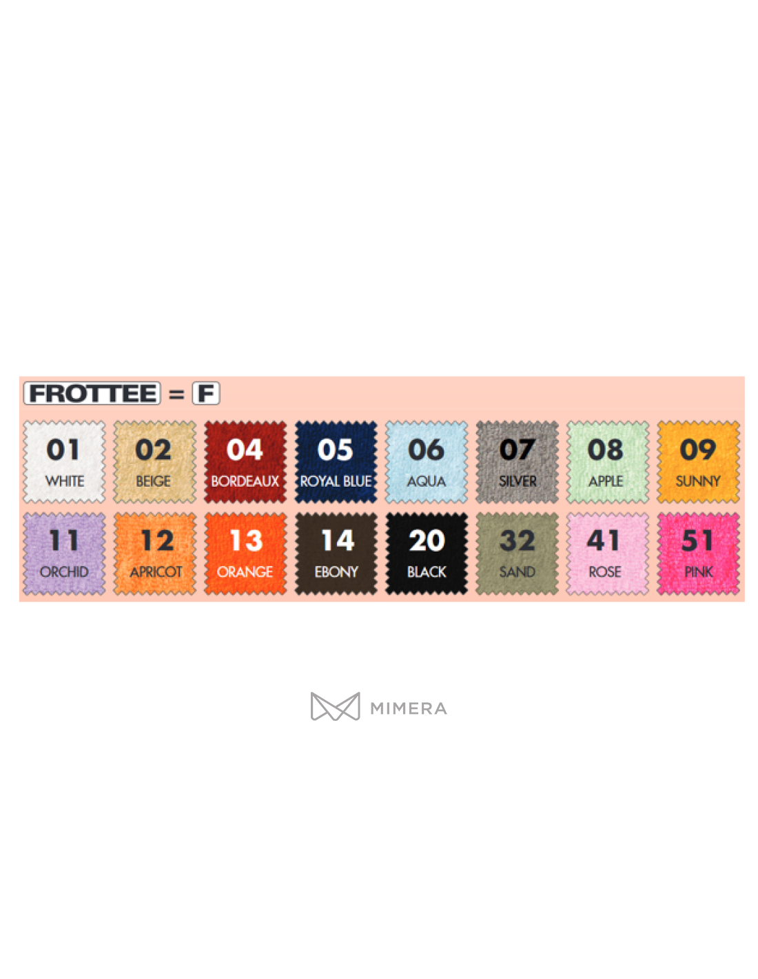 Sie bestehen aus einem hochwertigen Frotteematerial mit einem Gewicht von 270 g/m². Die obere Schicht besteht aus bequemer und schweißabsorbierender 100% iger Baumwolle, die untere Schicht aus 80% Baumwolle + 20% Polyester für Formstabilität.