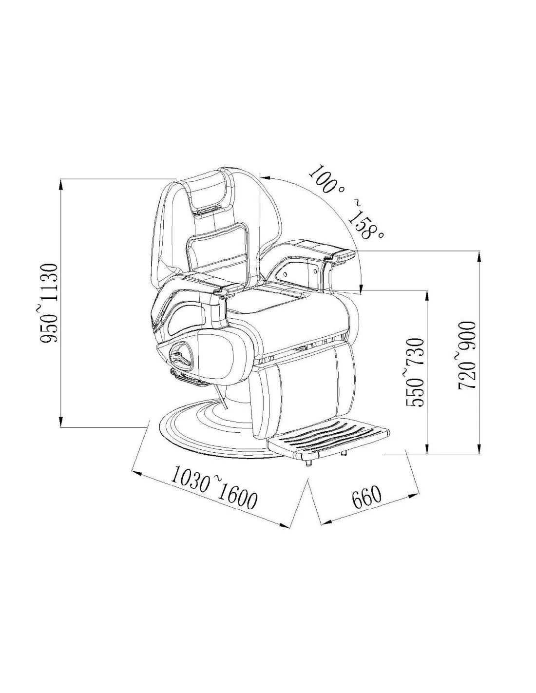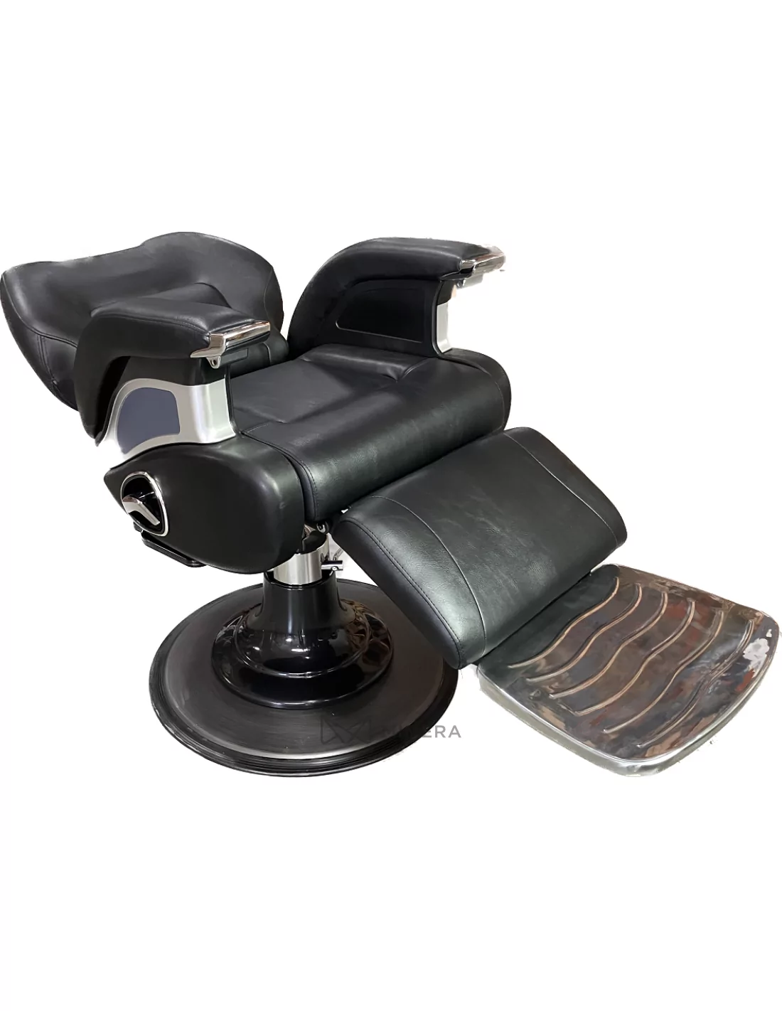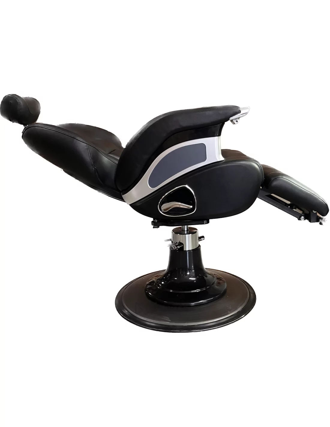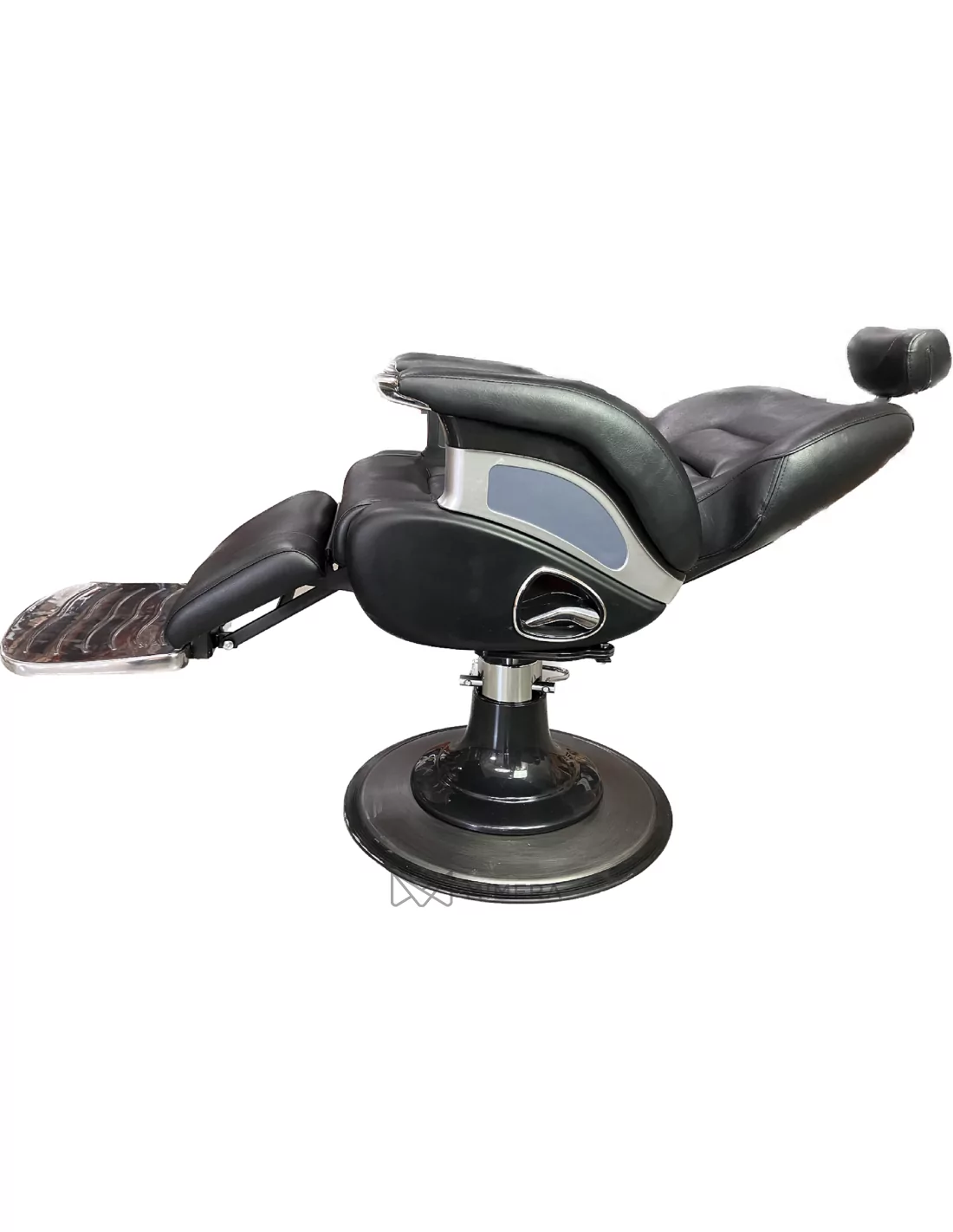 Der Stuhl ist mit einer hydraulischen Pumpe auf einer stabilen Basis ausgestattet, die eine Höhenverstellung ermöglicht. Dank der verstellbaren Teile wie Kopfstütze, Rückenlehne und Fußstütze bietet der Stuhl perfekten Komfort für jeden Kunden. Der Stuhl wird in eine fast waagerechte Position gebracht, um sowohl den Komfort des Kunden als auch einen angemessenen Ansatz des Friseurs zu gewährleisten.