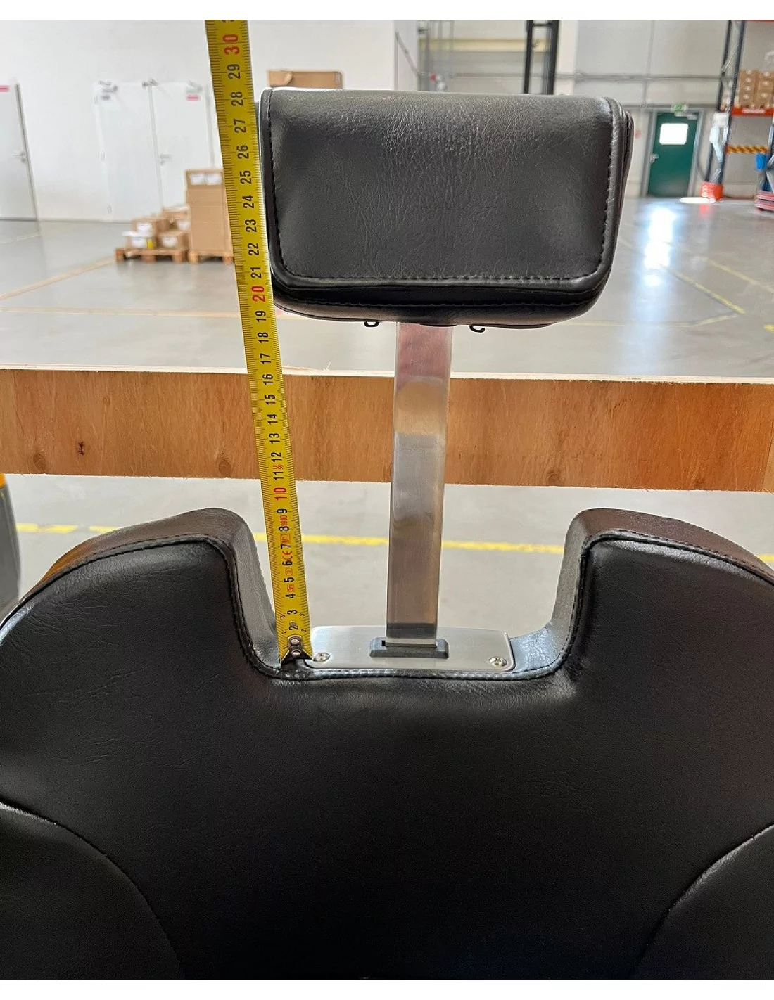 Eleganter Barberstuhl mit einem Massivholzsattelset. Es hat verstellbare Rückenlehnen, eine abnehmbare Kopfstütze, eine hydraulische Hebepumpe und eine feste Oberfläche. Die Polsterung mit einem hochdichten Memory-Schaum ermöglicht ein sehr angenehmes Gefühl. Dieser Stuhl ist mit einer speziellen Hydraulikpumpe bis zu 150Kg Belastbarkeit ausgestattet.
