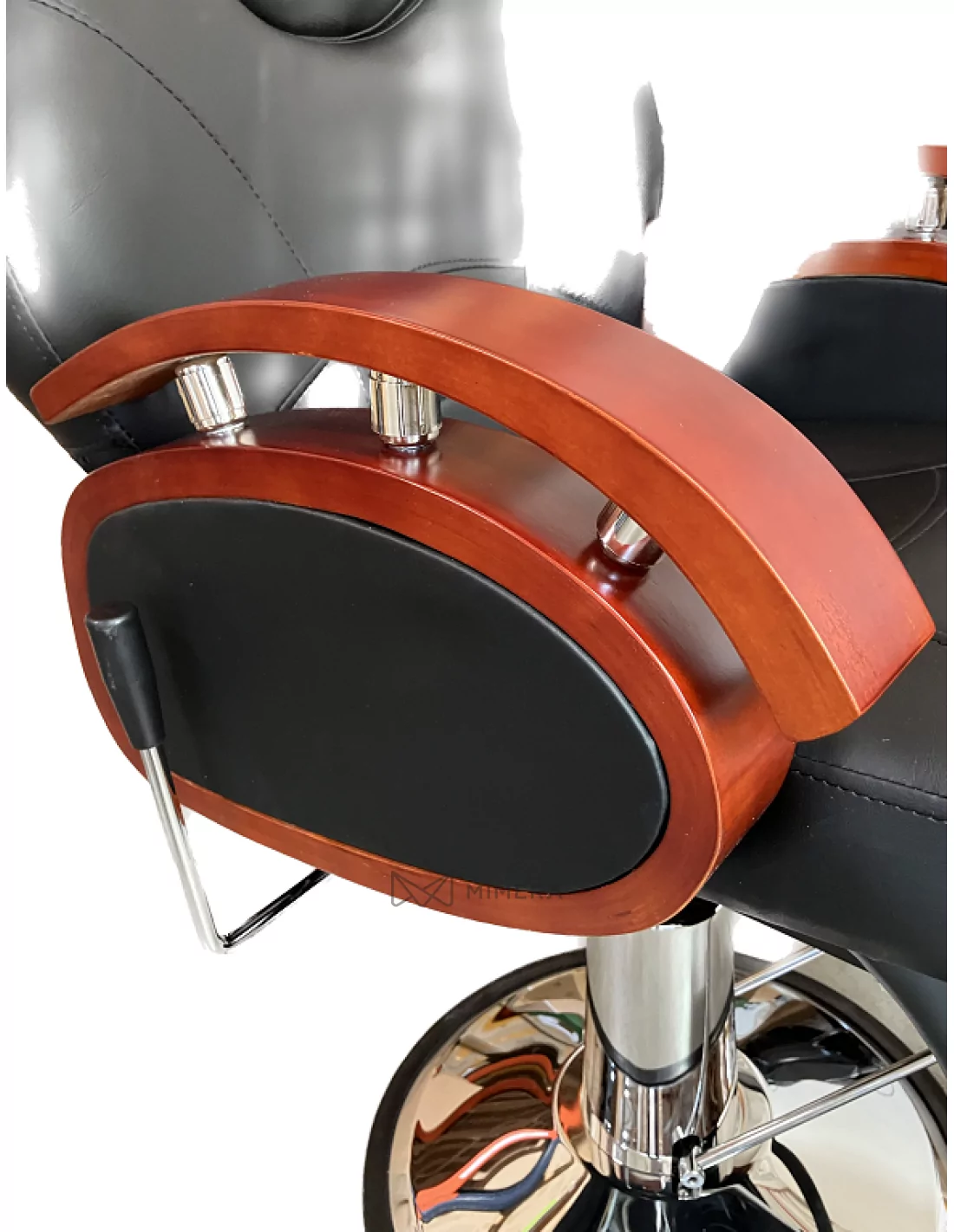 Ähnlich wie die anderen Stühle ist er höhenverstellbar durch eine Hydraulikpumpe, schwenkbar, die Kopfstütze ist ausziehbar und die Rückenlehne ist durch einen Hebel an der rechten Seite des Sitzes klappbar.