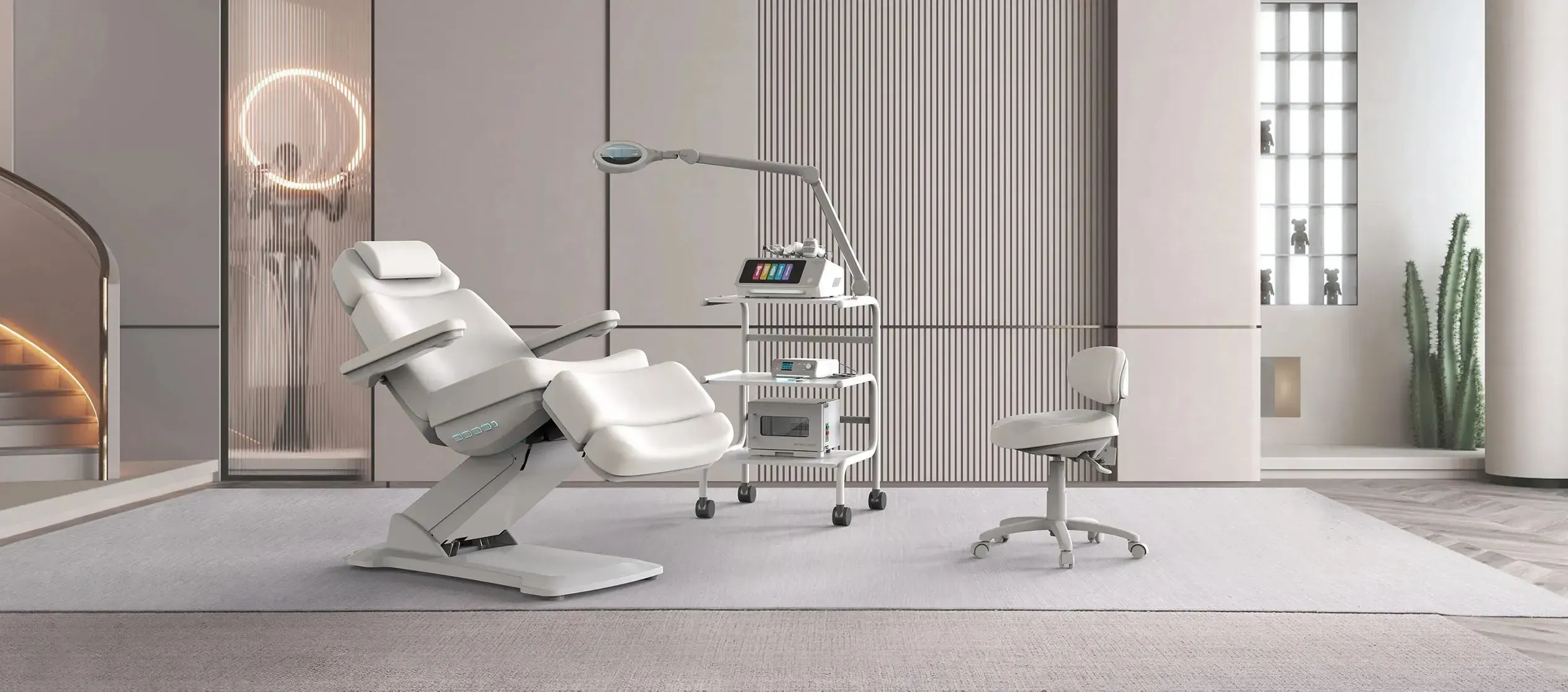Lehátko disponuje nastavitelnou opěrkou hlavy, odnímatelným hlavovým polštářkem a otvorem na obličej (FACECUT), což umožňuje jeho univerzální využití napříč různými typy procedur.