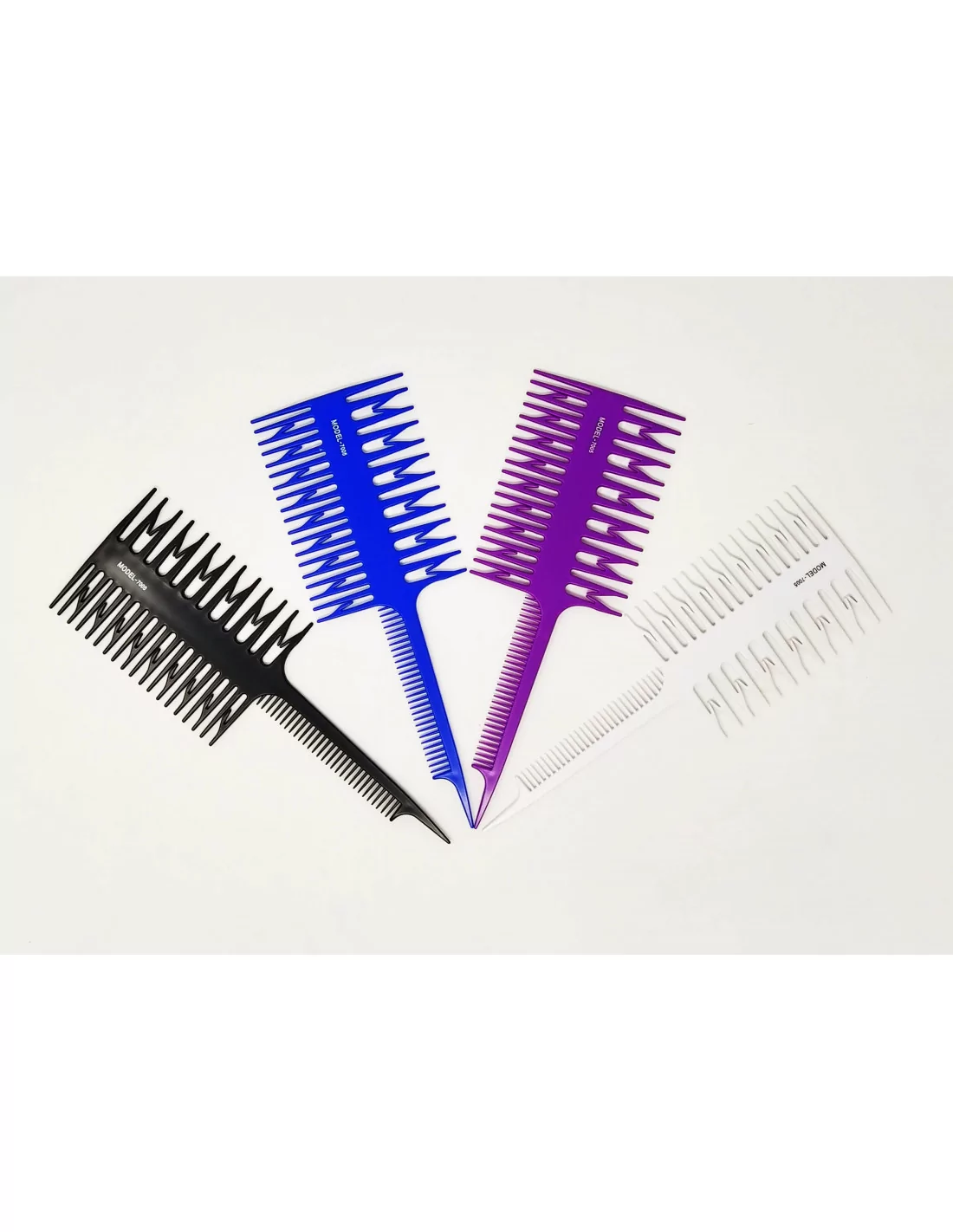 Doppelseitiger Farbkamm mit beidseitigen Zähnen und auch am Griff. Der Kamm erleichtert die Arbeit damit.