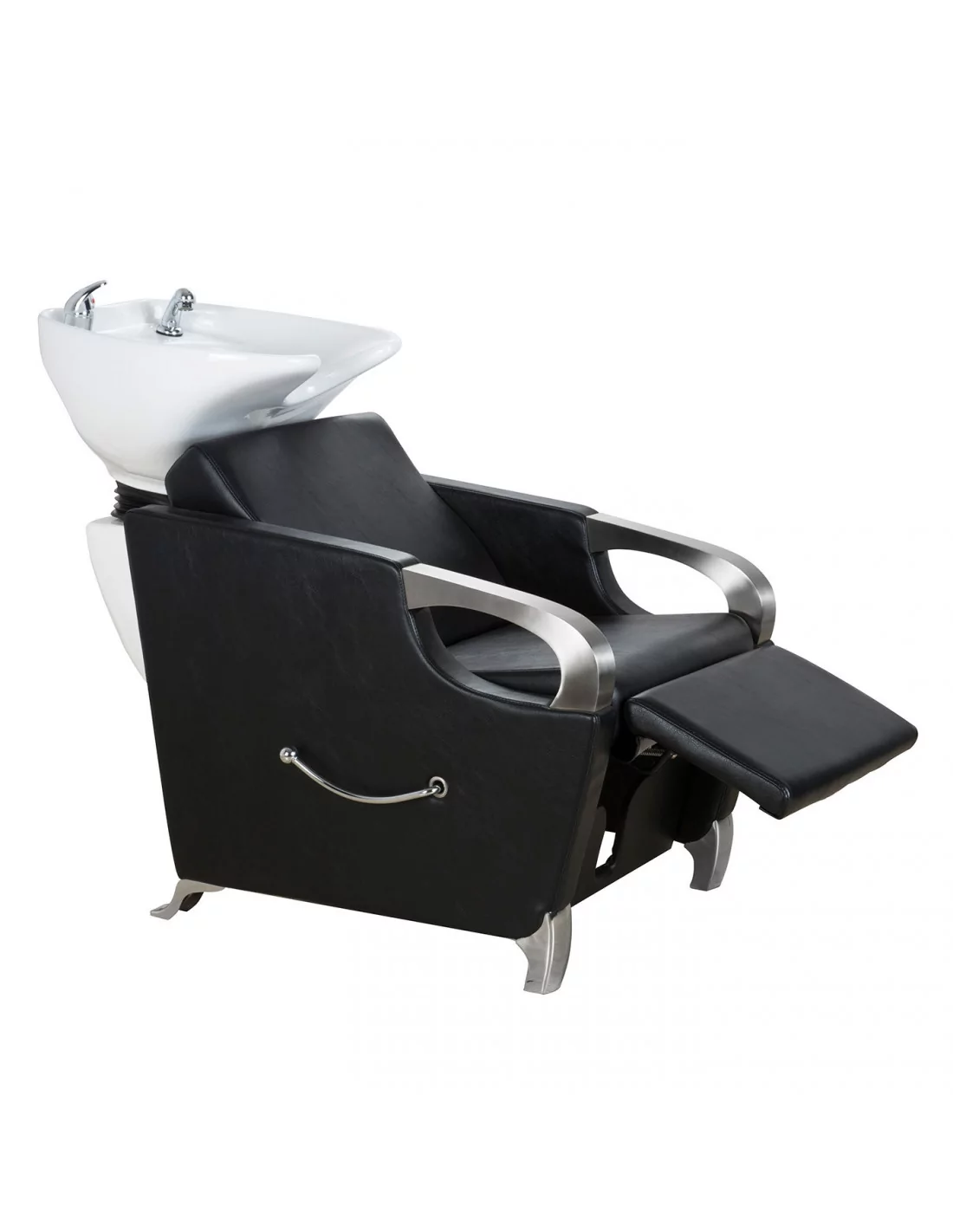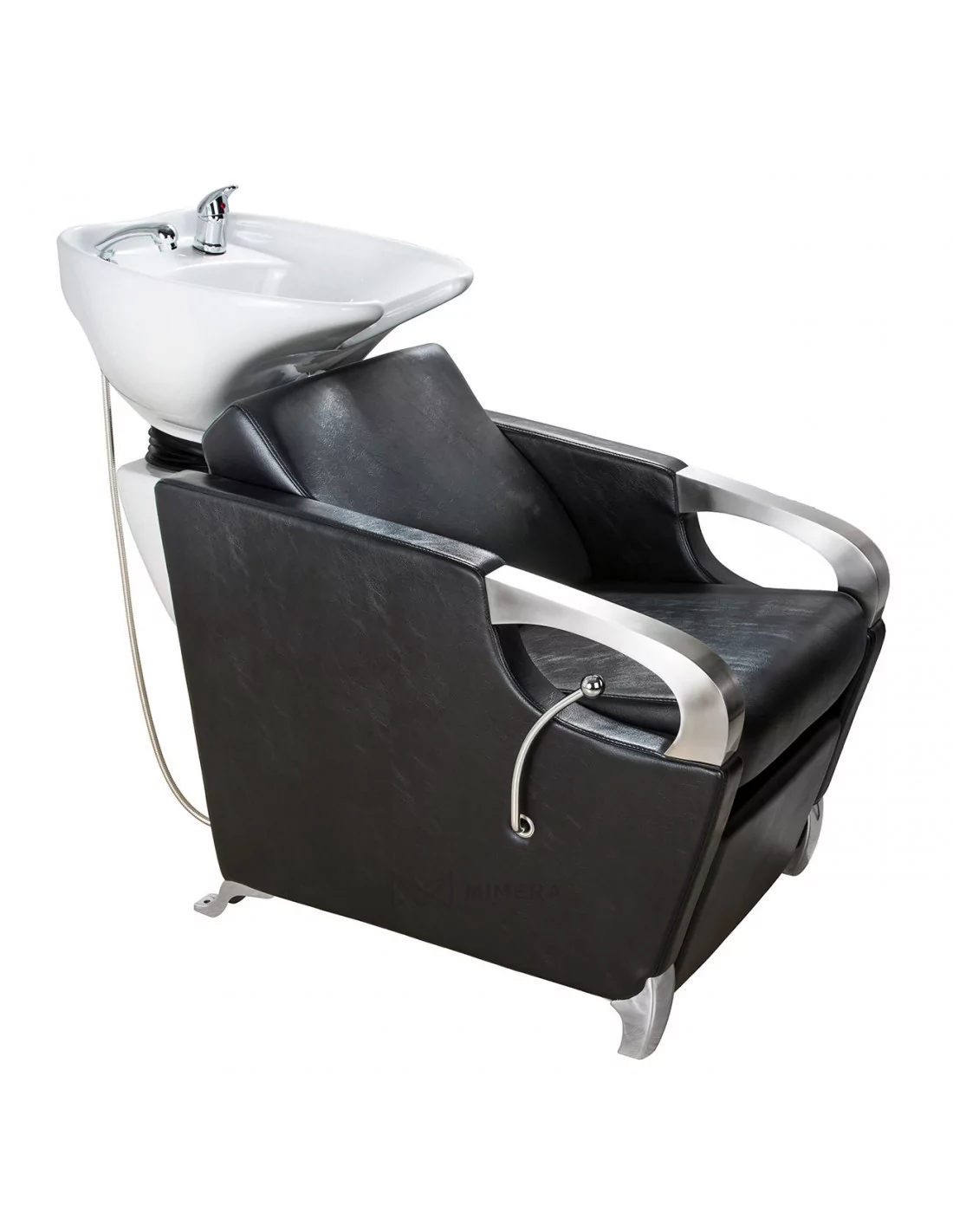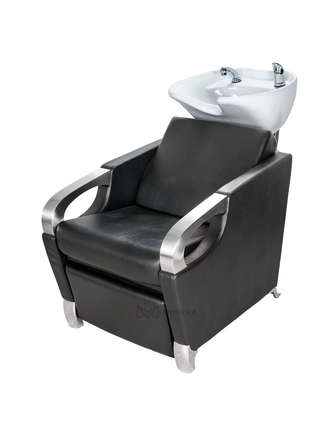 Hochwertiges Waschbecken mit komfortablem Polstersessel für ein professionelles Arbeiten.