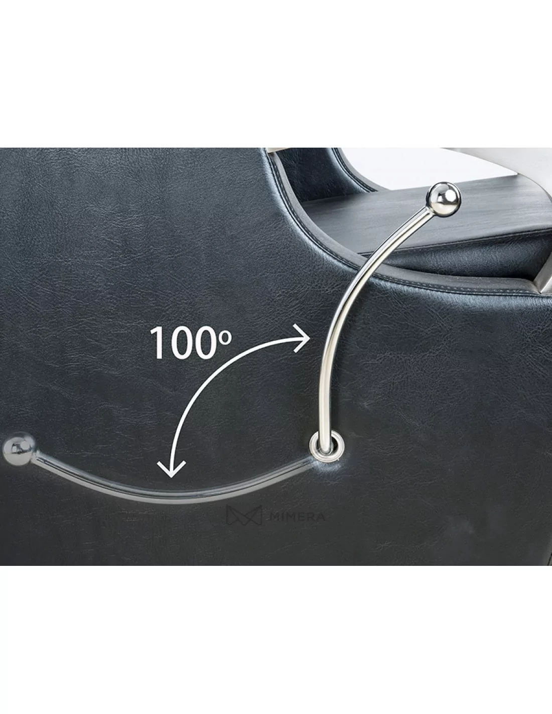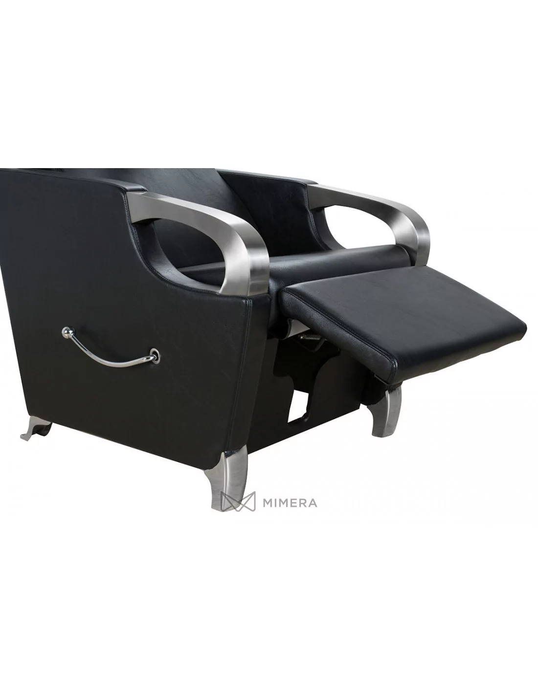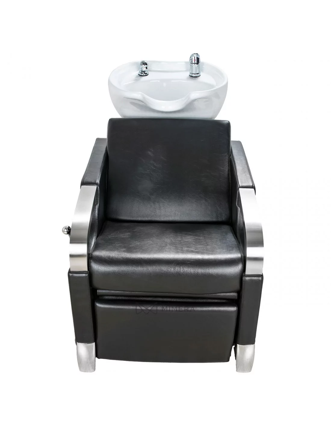 Hochwertiges Waschbecken mit komfortablem Polstersessel für ein professionelles Arbeiten.