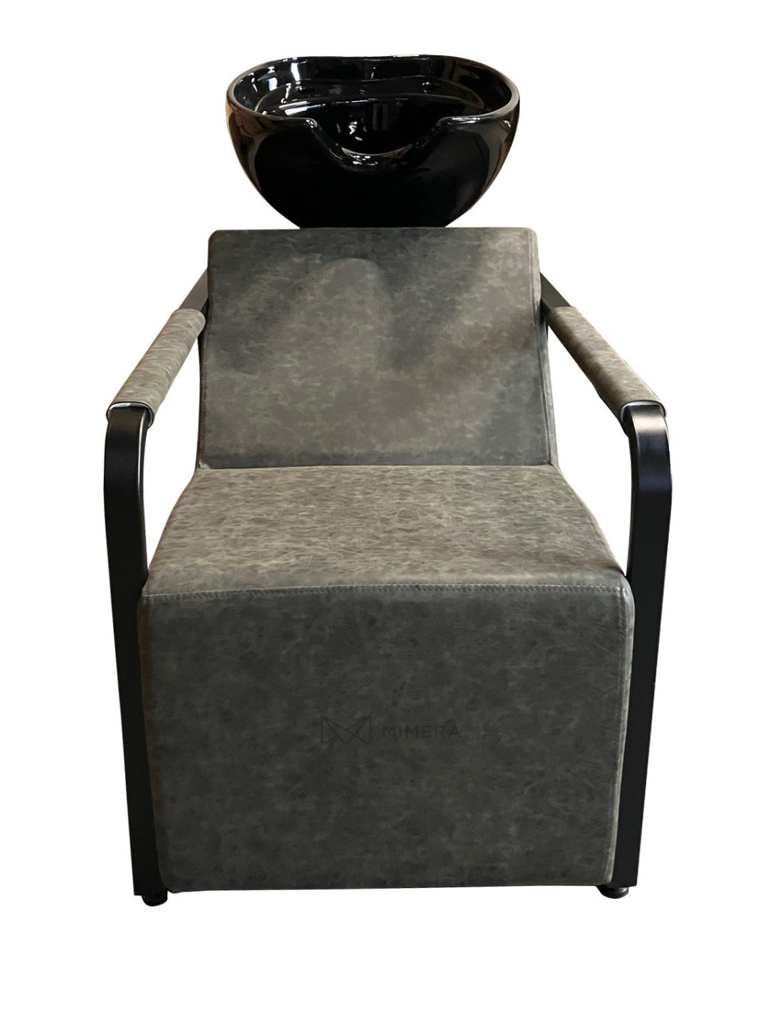 Bequemer Sitz mit weicher Polsterung in Marmor-Grau bietet maximalen Komfort für Kunden während der Haarwäsche. -