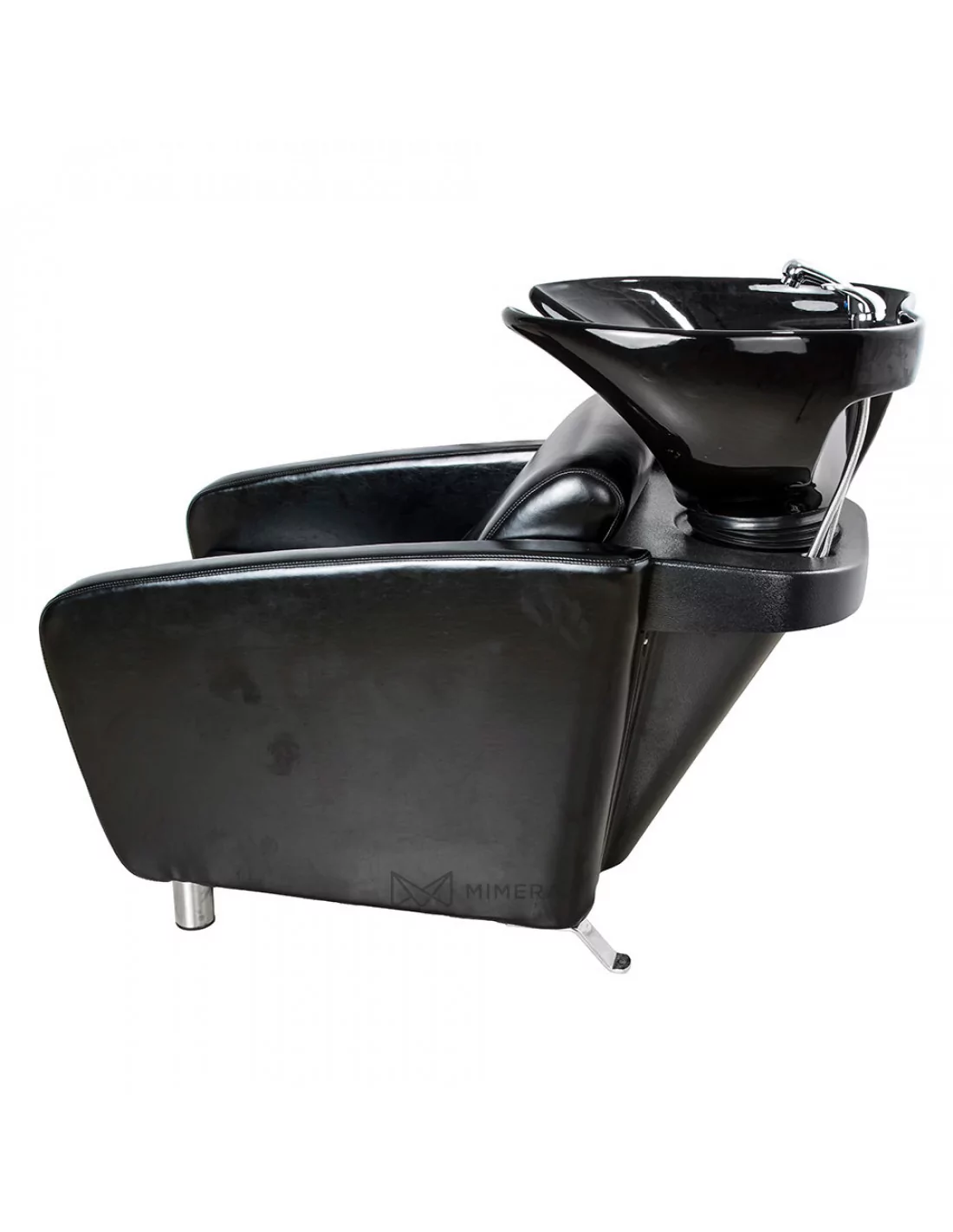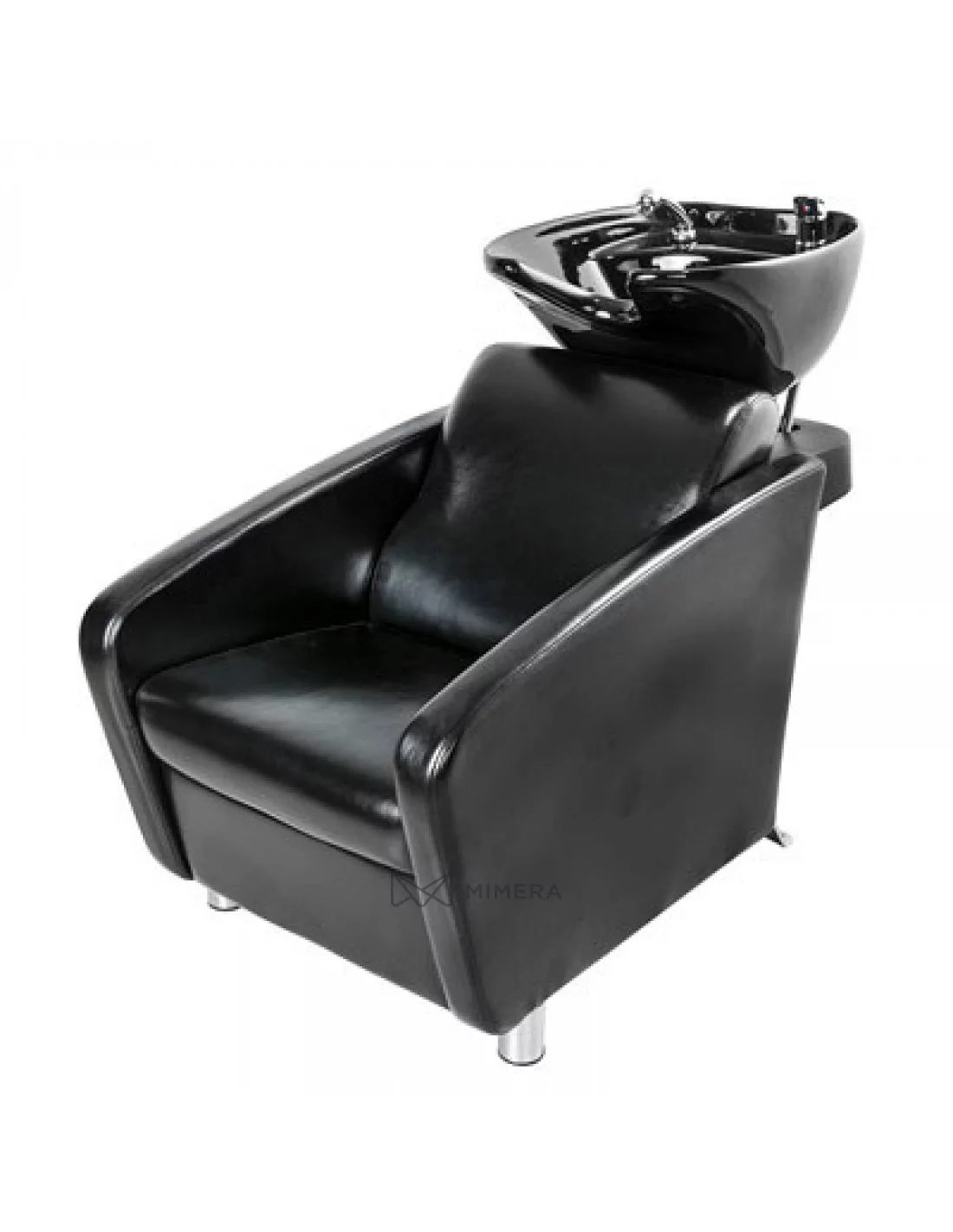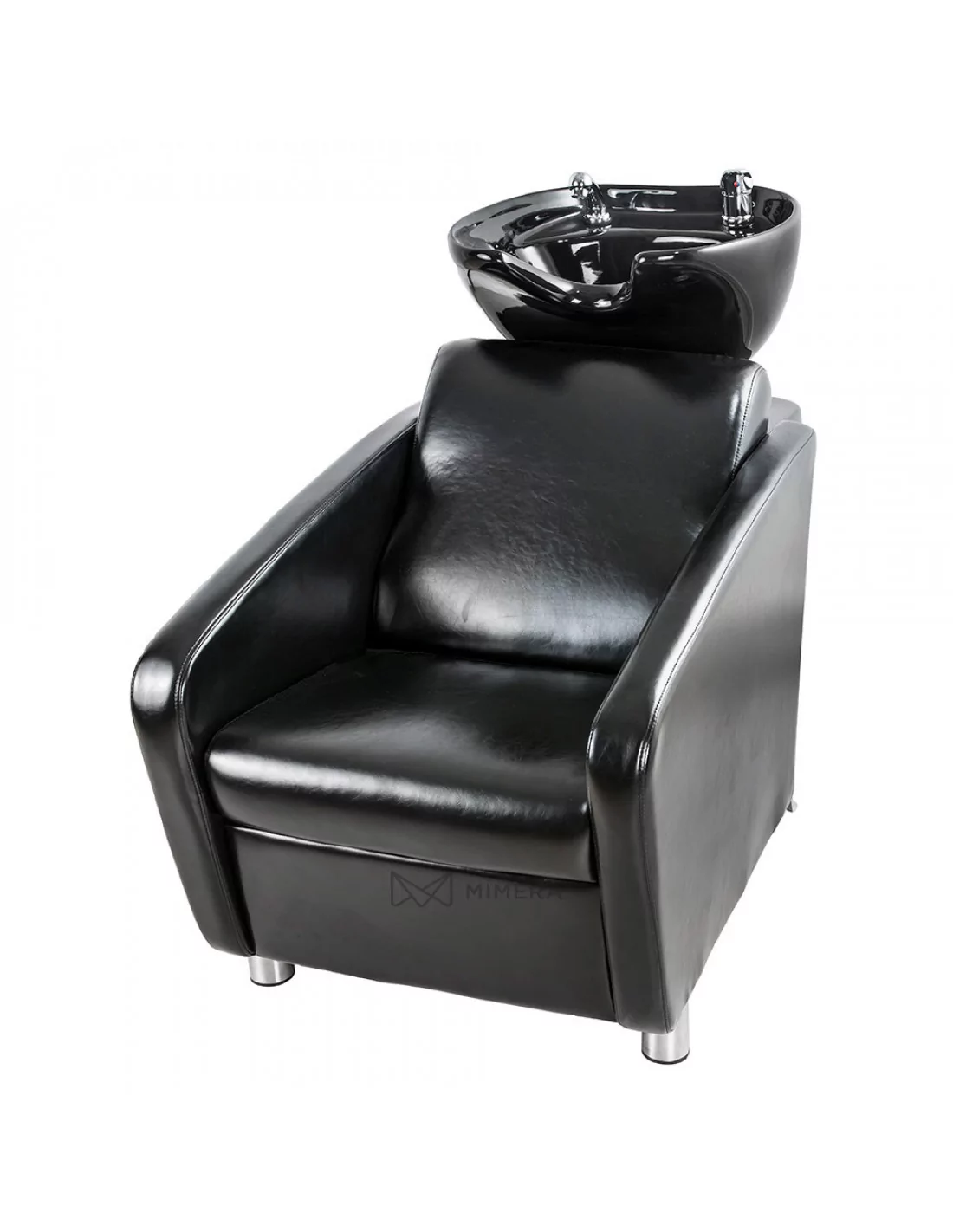 Hochwertiges Porzellanwaschbecken mit komfortablem Polstersessel für ein professionelles Arbeiten.