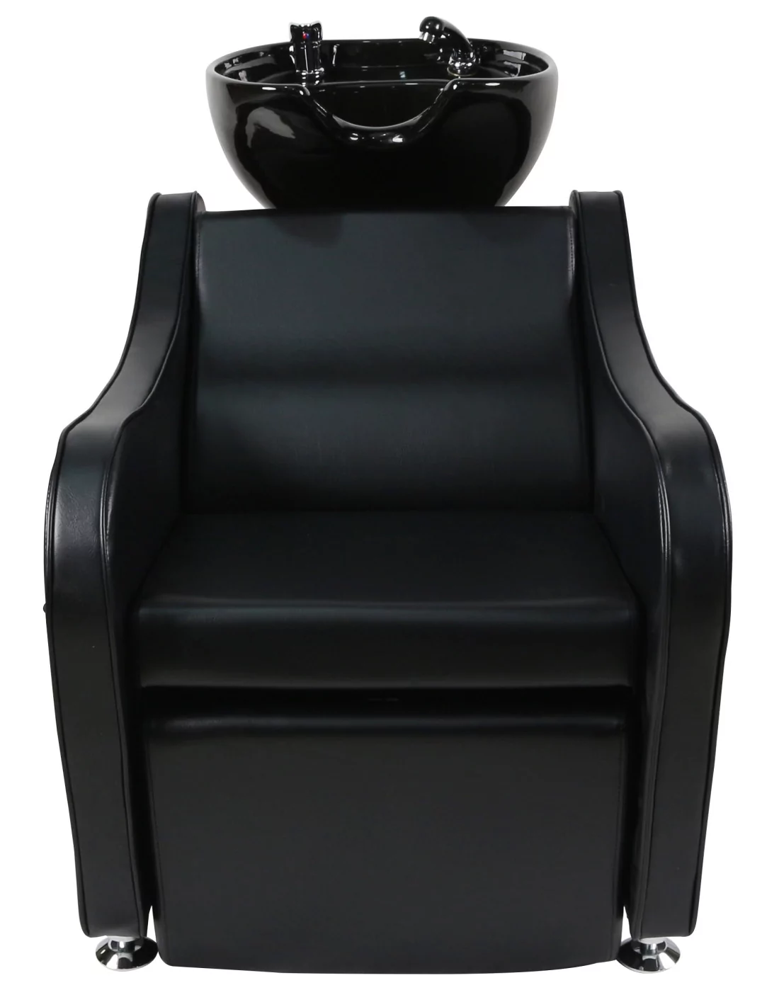 Hochwertiges Waschbecken mit komfortablem Polstersessel für ein professionelles Arbeiten.