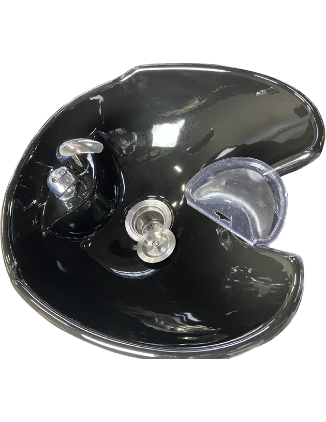 Mattes Schwarz, ein tiefes Keramikbecken und besonders robustes Polster machen dieses Modell zur idealen Wahl für Friseure und Barbershops mit Anspruch.