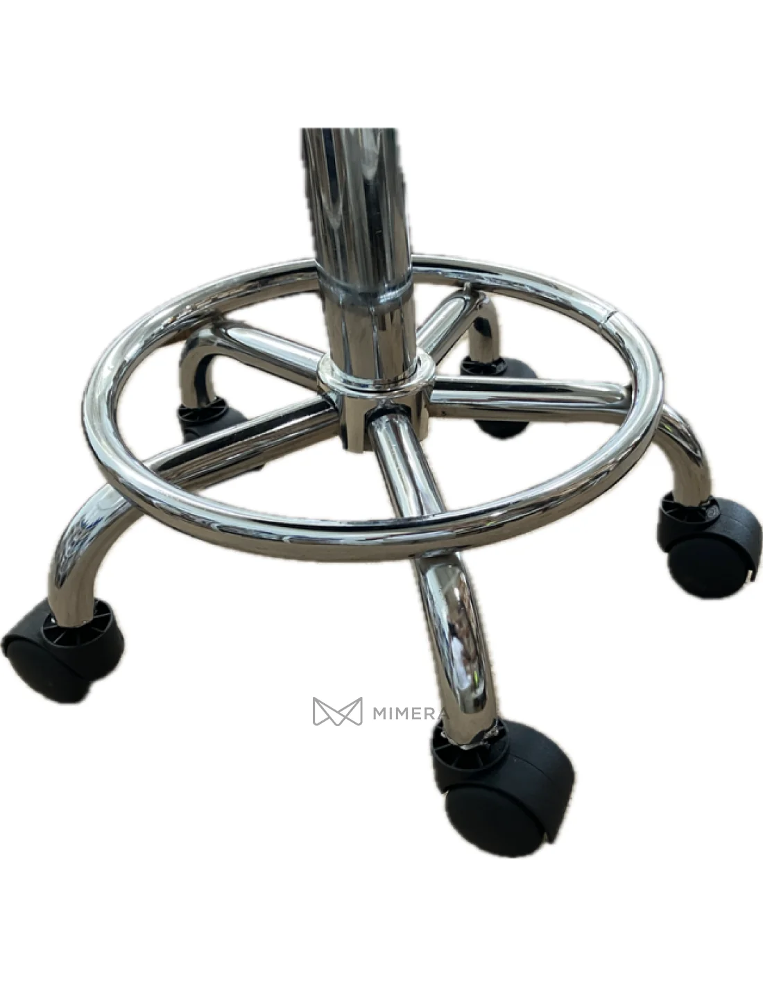Friseurhocker mit Pilzpolsterung. Die integrierte Ölpumpe ermöglicht es, den Sitz anzuheben und um 360 Grad zu drehen. Der Hocker hat eine sehr strapazierfähige Polsterung und eine robuste, langlebige Konstruktion mit runder Fußstütze.