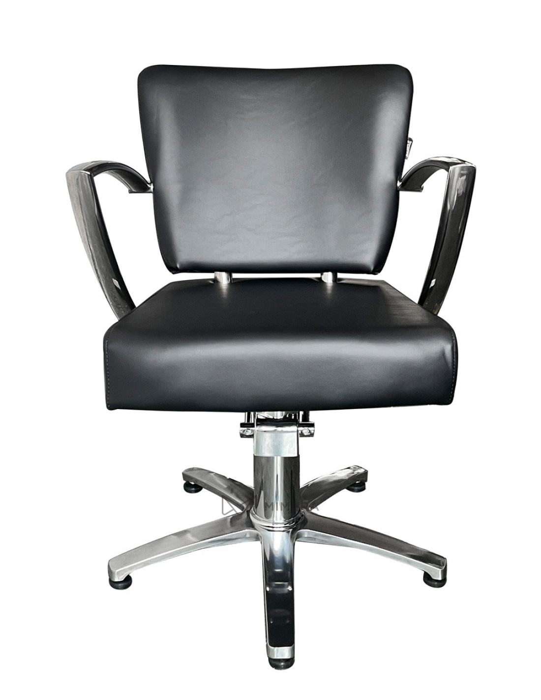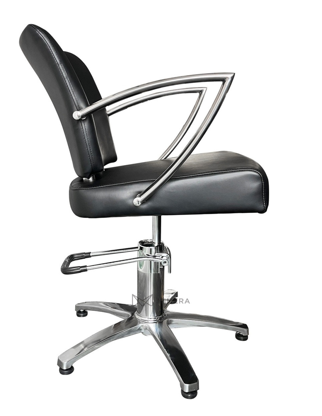 Modern, funktional und auffällig – der Friseurstuhl BASE CHROME in mattem Schwarz überzeugt auf den ersten Blick. Robuste Metallarmlehnen und ein bequemes Polster bieten stilvollen Komfort für den täglichen Einsatz.