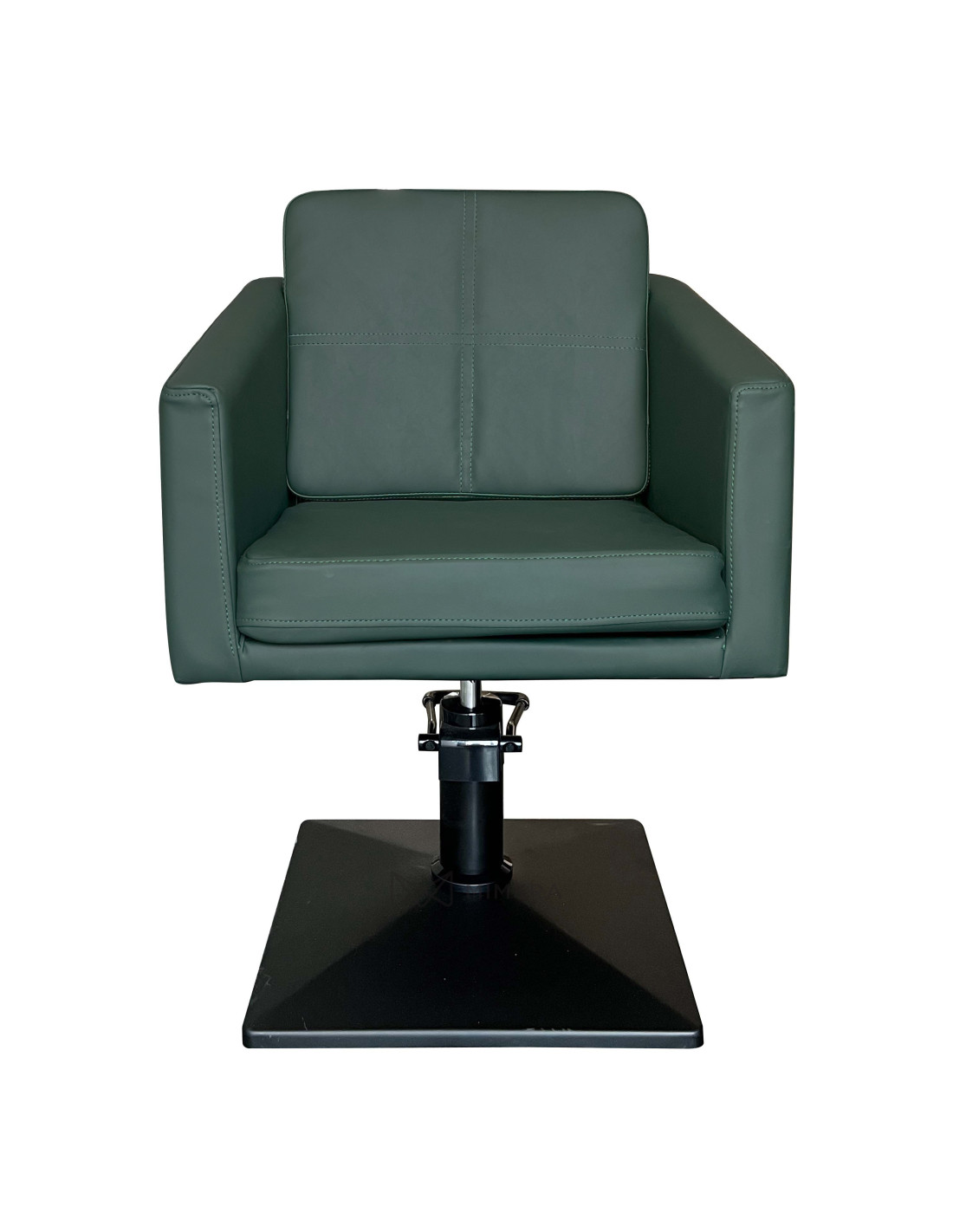 Der Friseurstuhl CUBE BLACK - Samtgrün ist ein stilvolles und praktisches Möbelstück, das perfekt in jeden modernen Friseursalon passt. Er besticht durch sein schlichtes und elegantes Design, hochwertige Verarbeitung und Komfort für Kunden und Friseure.