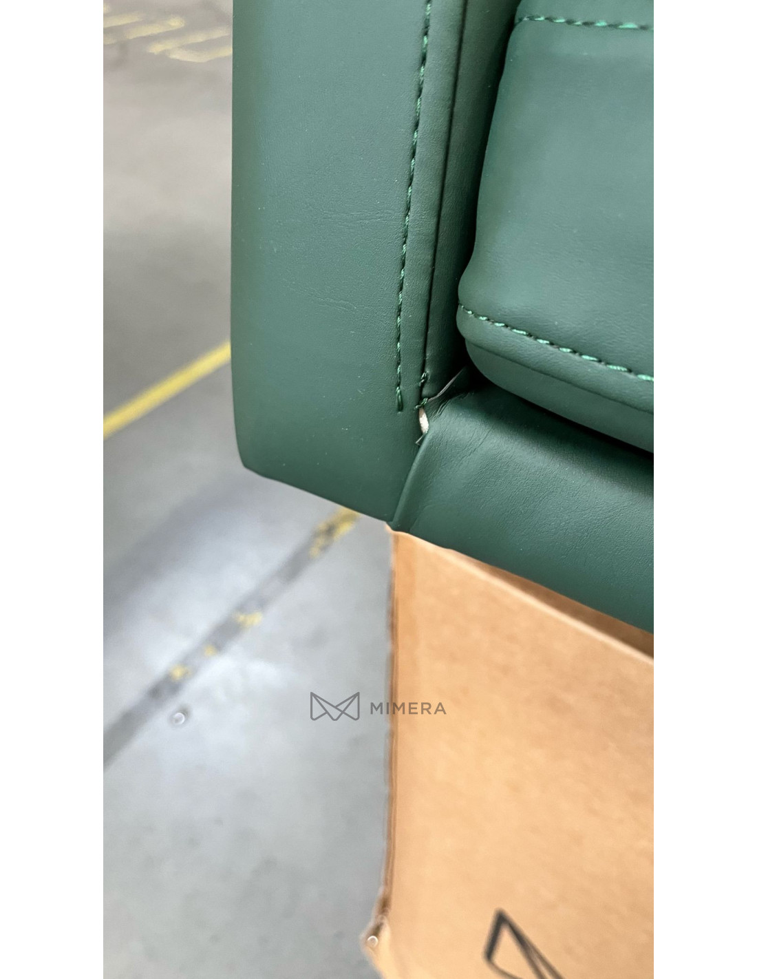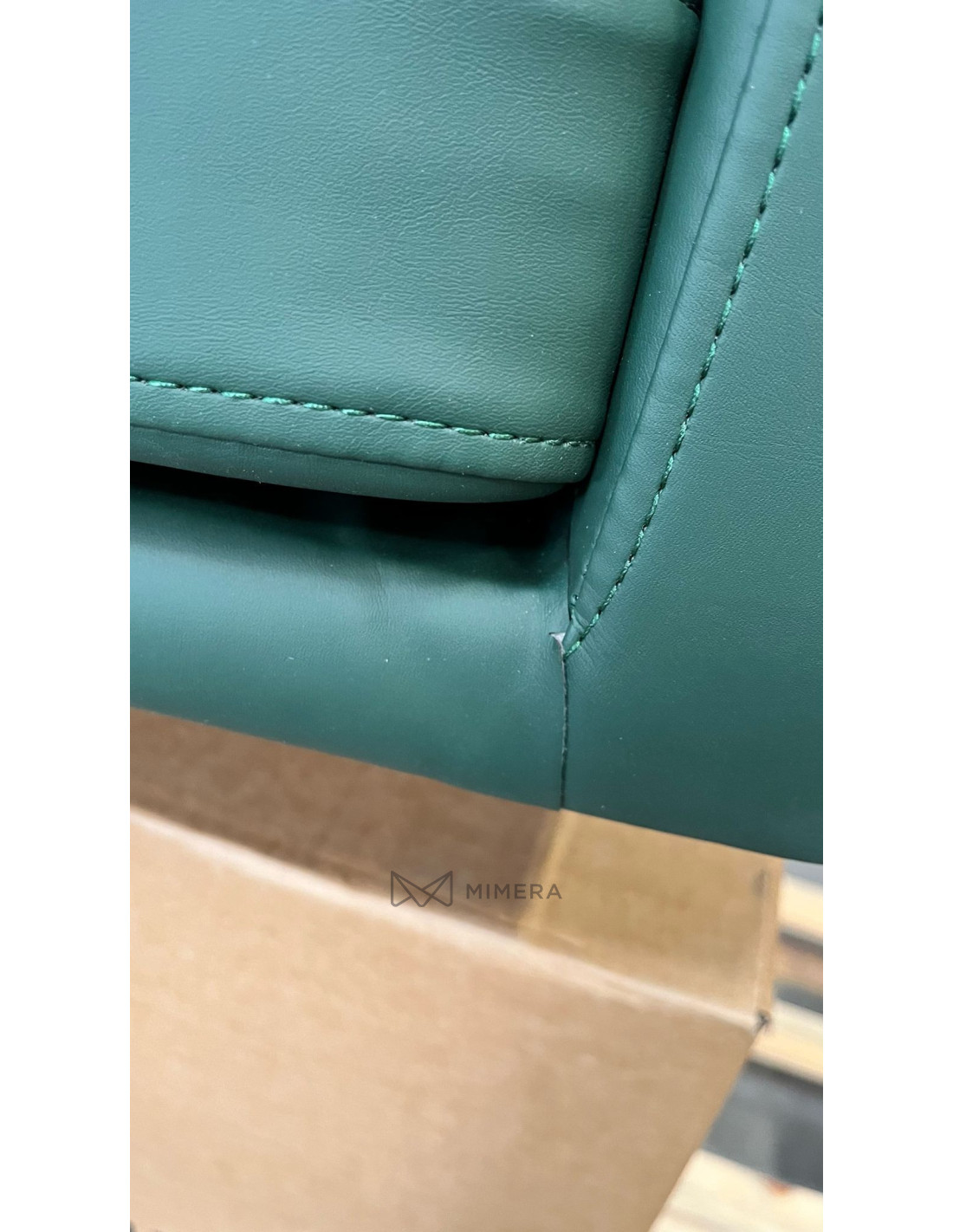 Der Sitz und die Rückenlehne sind ergonomisch geformt, um maximalen Komfort für den Kunden zu gewährleisten. Die weiche Polsterung in Samtgrün verleiht dem Stuhl ein einzigartiges Aussehen und bietet Komfort auch bei längeren Behandlungen.