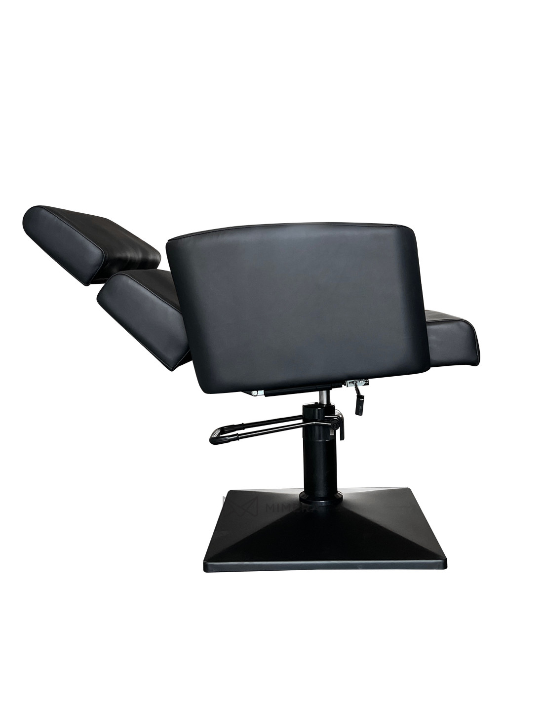 Die Rückenlehne des KVERT BLACK kann in verschiedene Winkel geneigt werden, was eine hohe Flexibilität bei verschiedenen Friseurarbeiten bietet. Diese Funktion ist besonders nützlich für Behandlungen, die eine leichte Neigung erfordern, und erhöht den Komfort der Kunden.