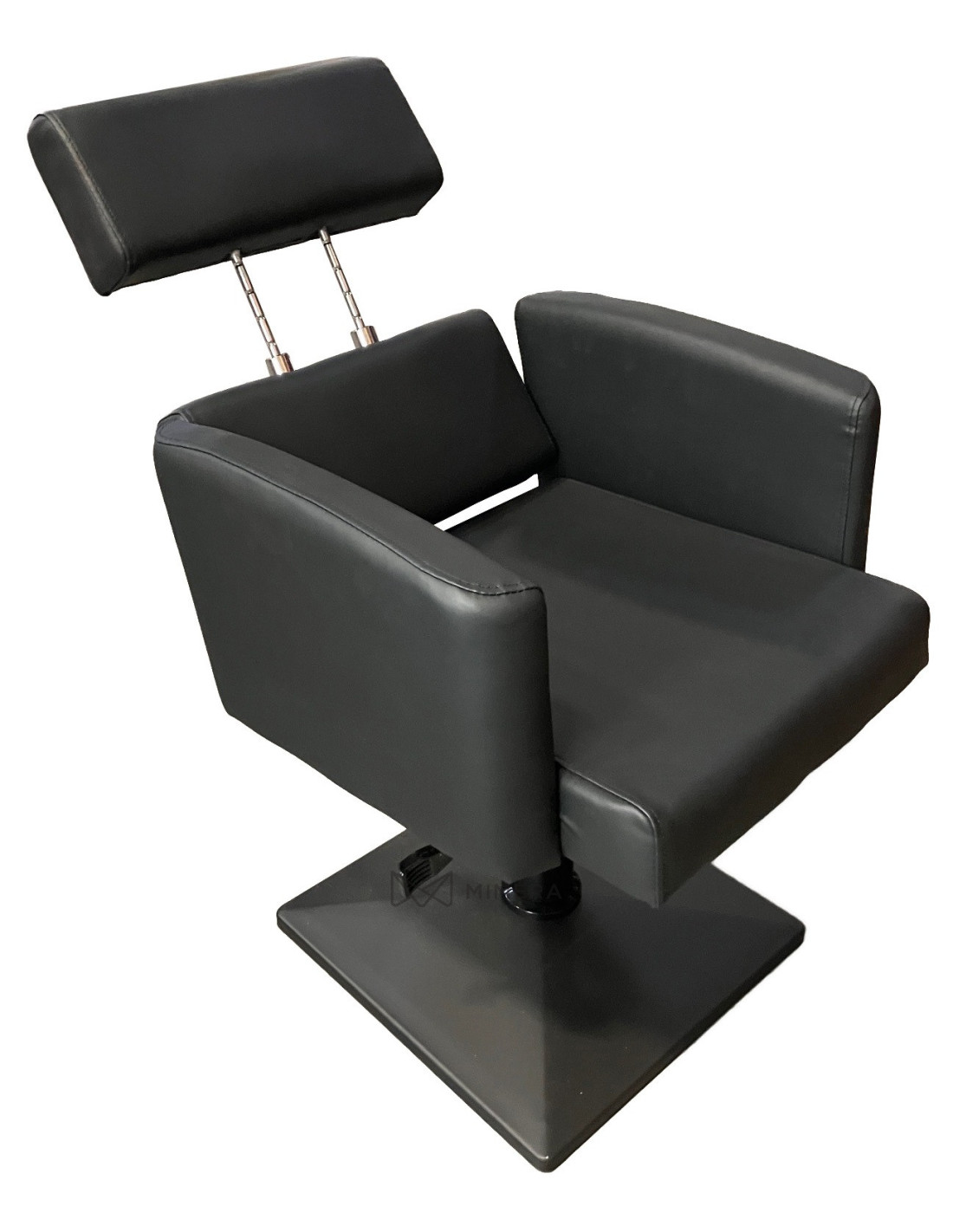 Die Polsterung des Stuhls besteht aus strapazierfähigem, aber weichem Material, das leicht zu reinigen und angenehm zu berühren ist. Das ergonomisch geformte Sitz- und Rückendesign sorgt auch bei längeren Behandlungen für den Komfort der Kunden. Die trendige, komplett schwarze Farbgebung verleiht dem Stuhl ein anspruchsvolles und modisches Aussehen, das zu jedem Salon passt.