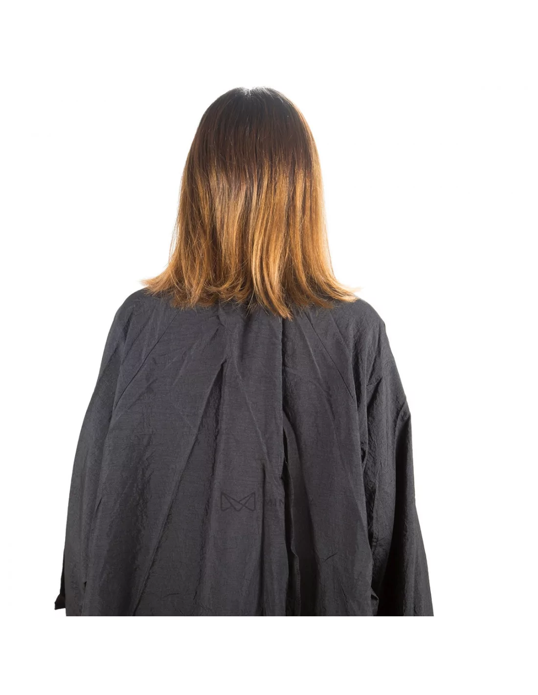 Friseurumhang mit verstellbarem Halsverschluss und halblangen Ärmeln, besonders geeignet zum Haarschneiden, aber auch zum Färben der Haare. Es deckt die Kleidung des Kunden perfekt ab und verhindert jegliche Verschmutzung.