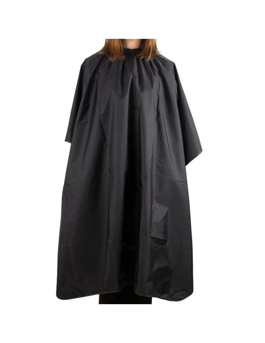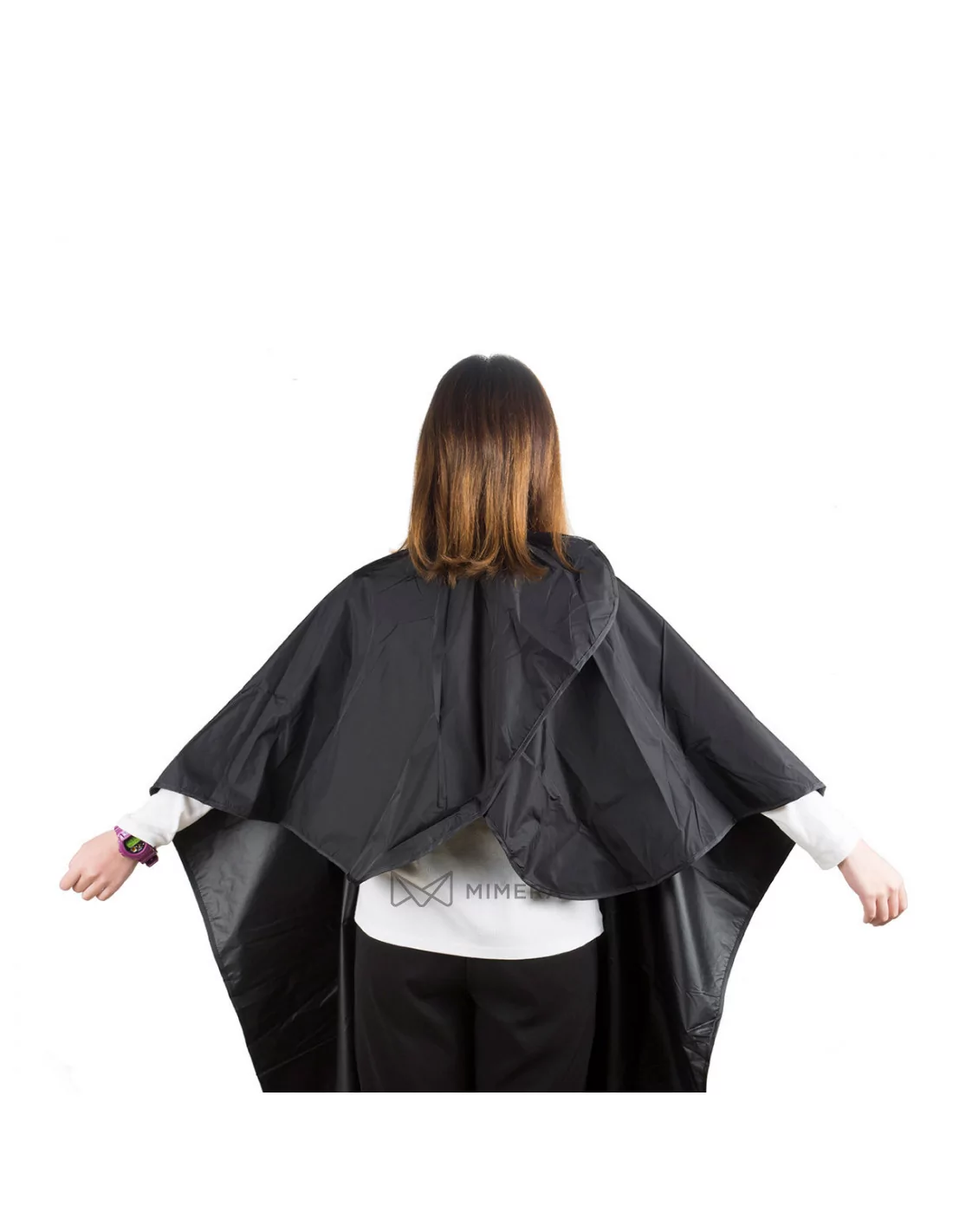 Umhang mit verstellbarem Halsverschluss, besonders geeignet zum Haareschneiden, aber auch zum Färben. Es ist aus wasserabweisendem Material gefertigt und schützt die Kleidung sehr gut.