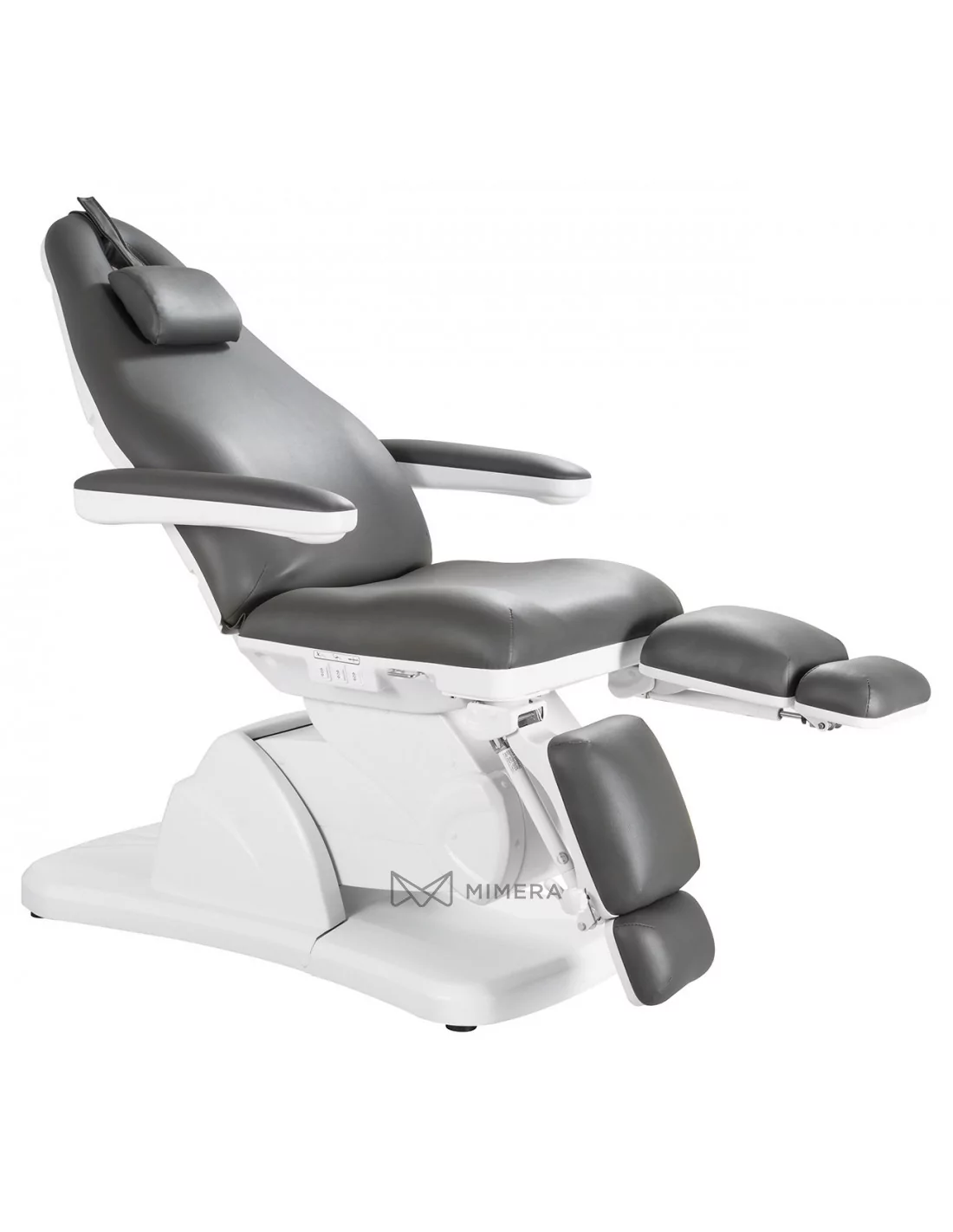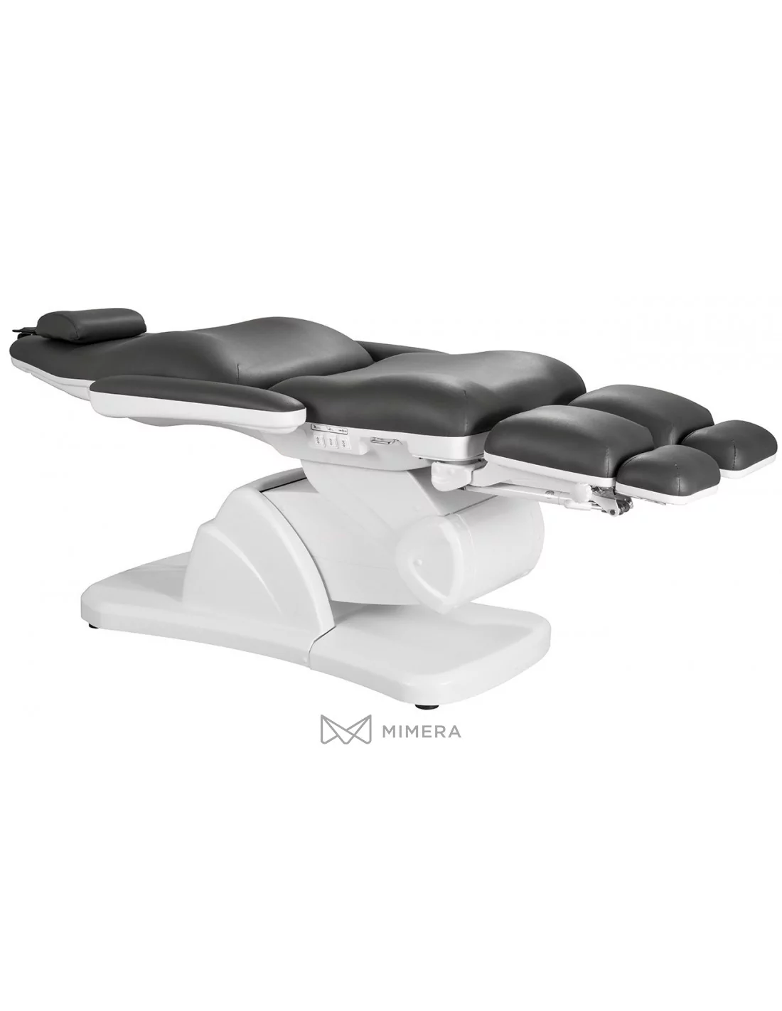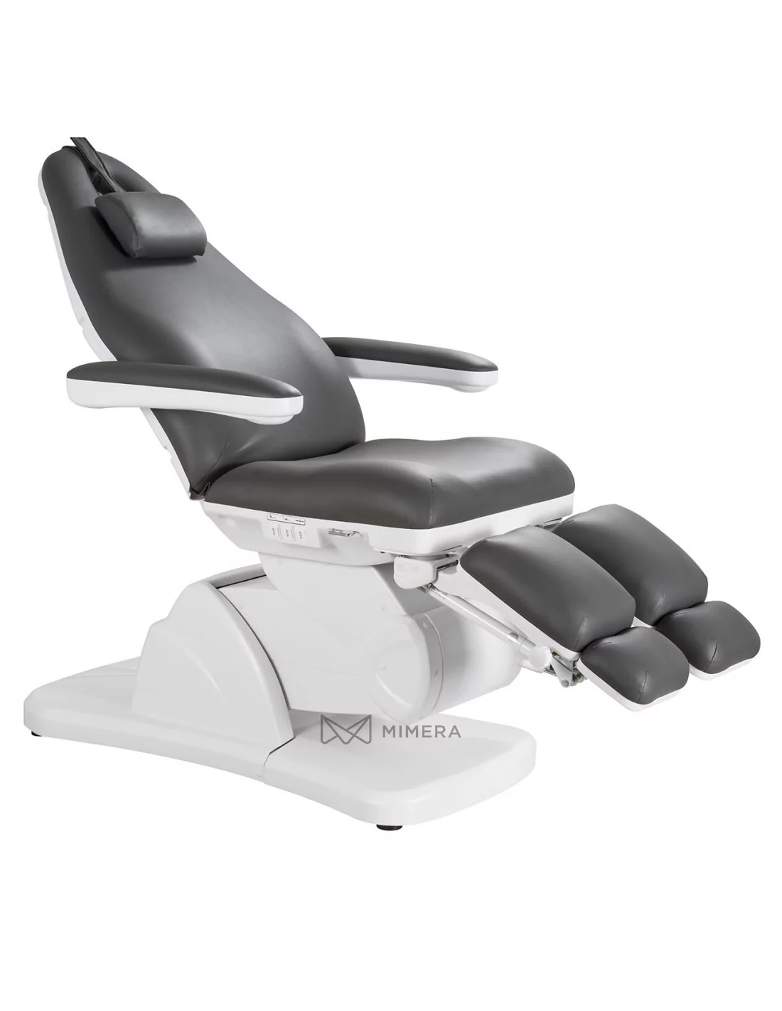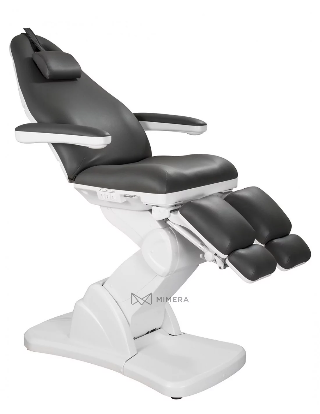 Stilvoller Fußpflegestuhl BARON mit 3 Motoren zur Einstellung von Höhe, Rückenlehne und Sitzneigung. Die Fußteile sind um 90 ° seitlich drehbar, über einen Pneumatikhebel stufenlos höhenverstellbar und auch ausziehbar.