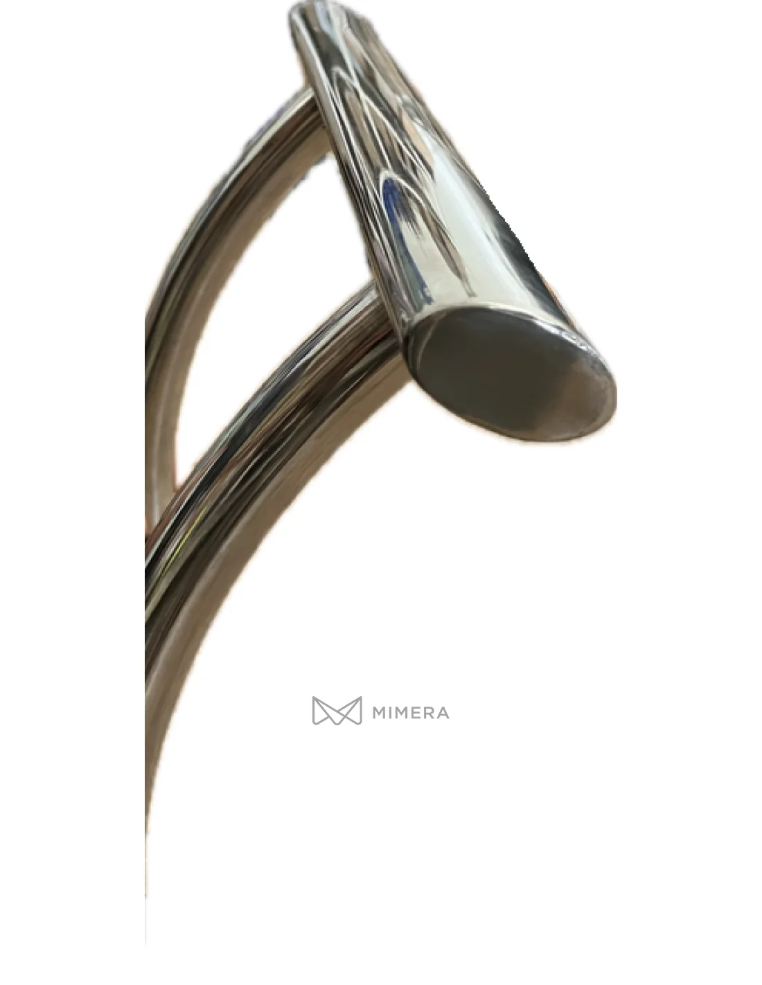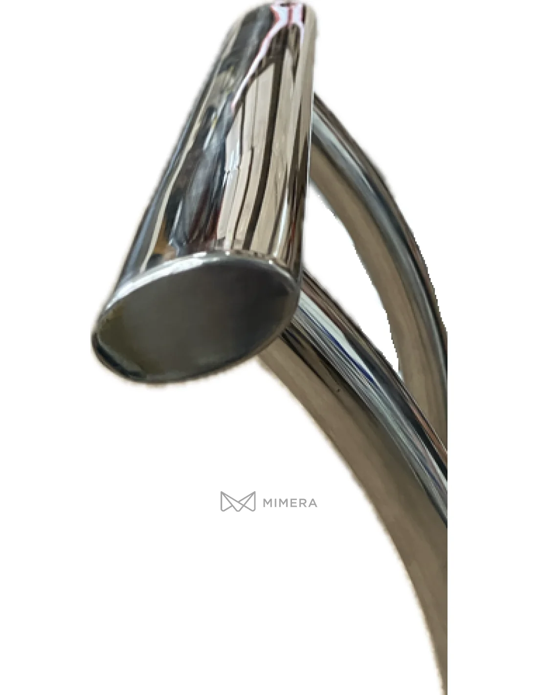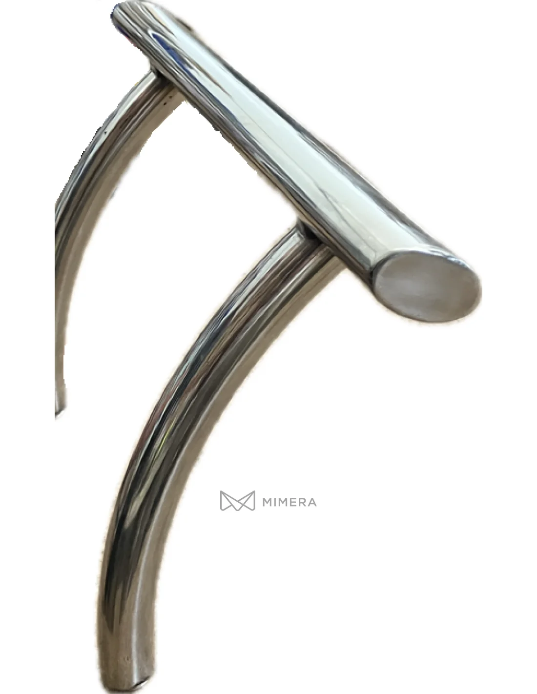 Fußstütze aus rostfreiem Stahl. Die Fußstütze ist freistehend, sie muss nicht am Boden verschraubt werden.