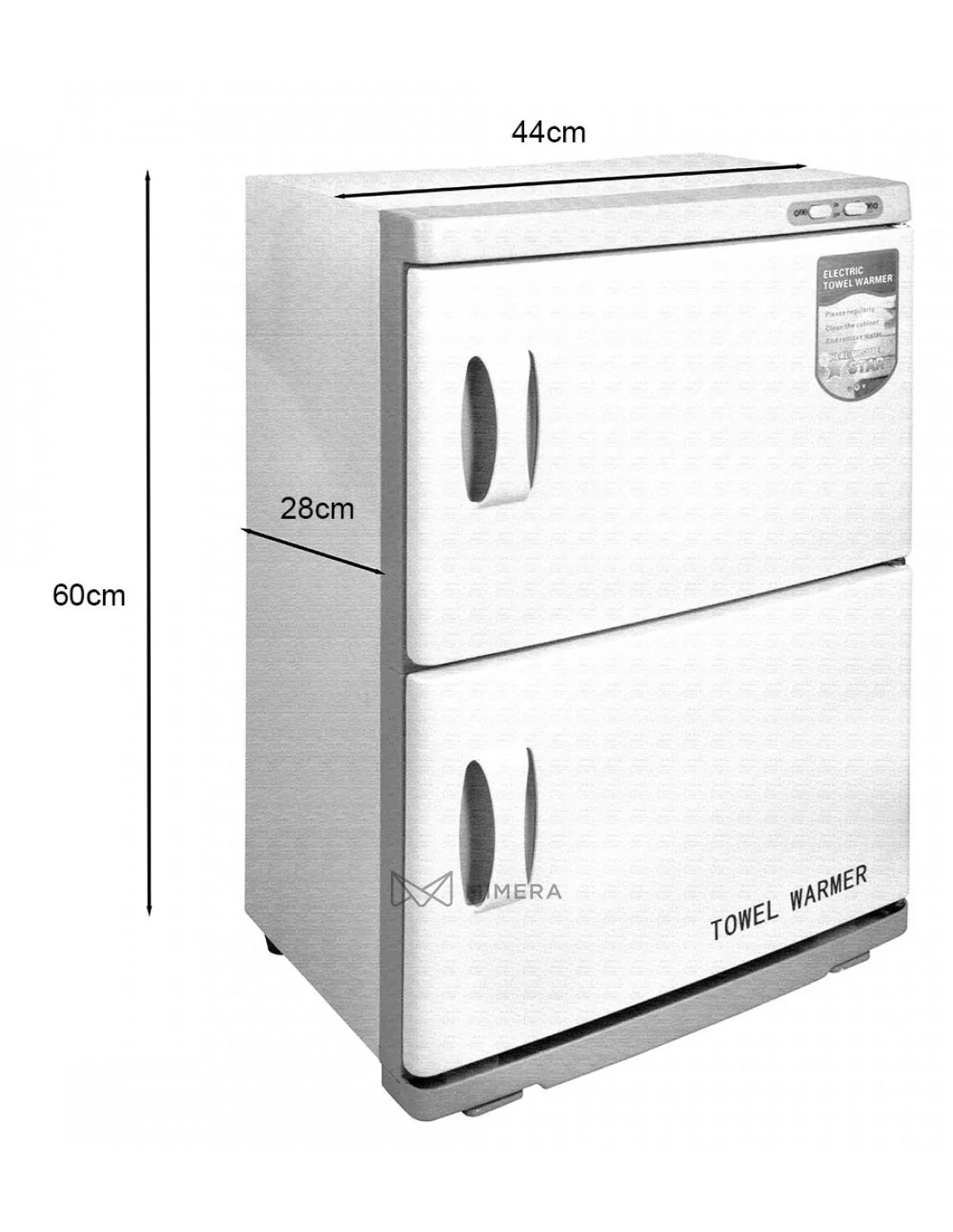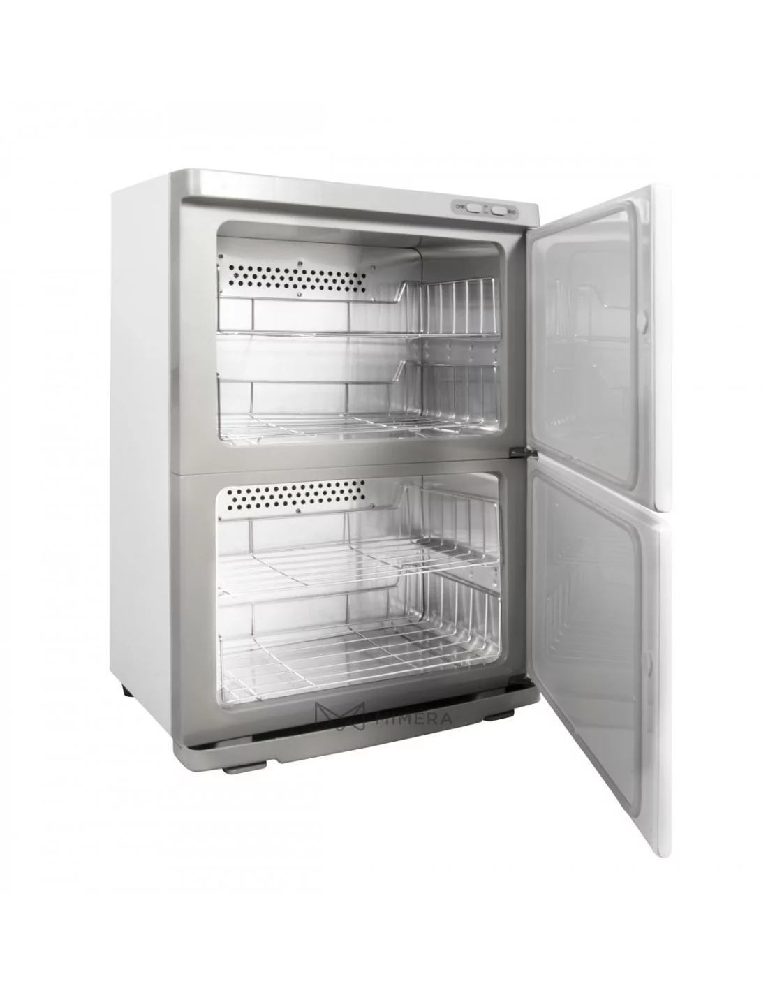 Dieser Handtuchwärmer und der Sterilisator in einem Gerät sind speziell für die Erwärmung von Handtüchern in Schönheits- und Massagesalons, Wellnesscentern, Hotels und ähnlichen Einrichtungen konzipiert. Hält Handtücher bei einer konstanten Temperatur von 80 ± 10 ° C warm. Das Gerät besteht aus zwei identischen Kabinen. Jedes Fach hat zwei Fächer mit korrosionsbeständigem Aluminium-Innenraum. Es verfügt über einen eingebauten UV-Sterilisator, der die Handtücher bakterienfrei hält, und einen abnehmbaren Wassertank.