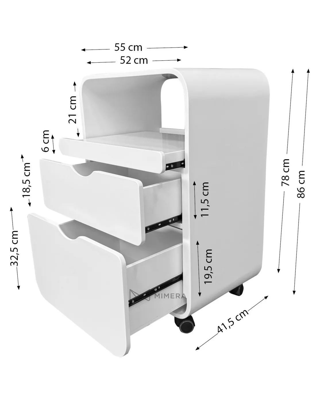 Der Instrumentenwagen FLOW eignet sich ideal zur Organisation des Arbeitsplatzes in Kosmetiksalons, Wellness-Zentren, Massagesalons, Pediküre-Studios oder Büros. Sein praktisches Design und ausreichend Stauraum machen ihn zu einer universellen Lösung für jede professionelle Umgebung.
