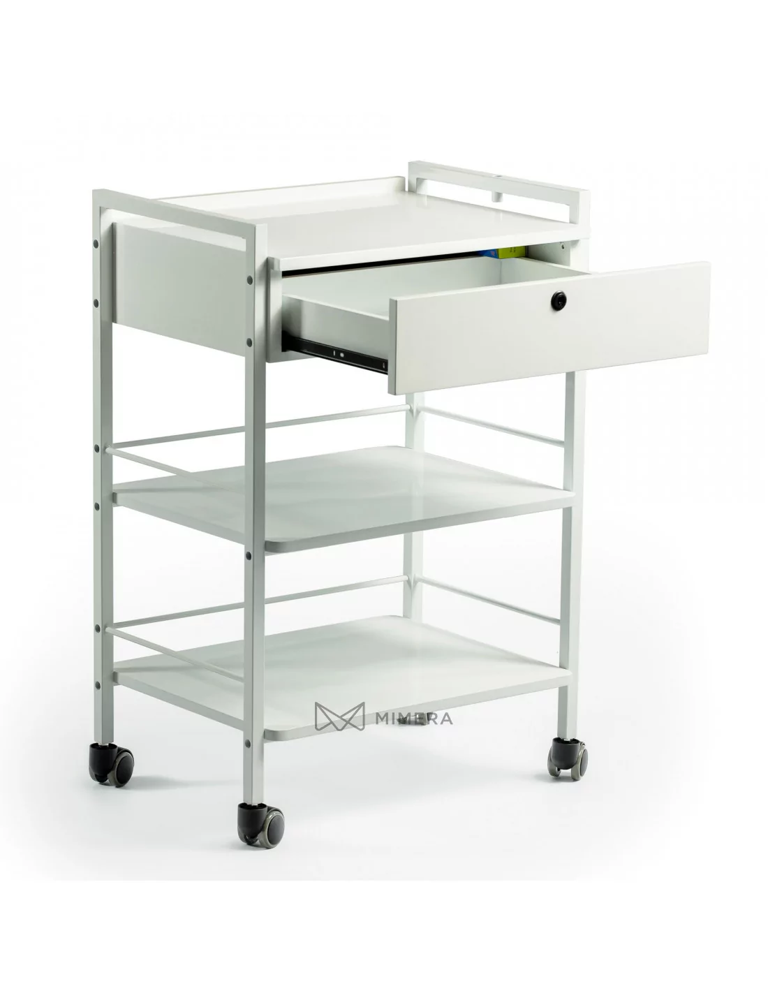 Eine praktische, moderne Lösung für die Verstauung und Unterbringung Ihrer Arbeitsutensilien. Dieser Arbeitswagen hat neben drei Ablageflächen eine zusätzliche Schublade. Die abschließbare Schublade kann jedoch genauso als Ablagefläche genutzt werden. So können Sie die regelmäßig gebrauchten Arbeitsutensilien griffbereit aufbewahren und die seltener verwendeten.
