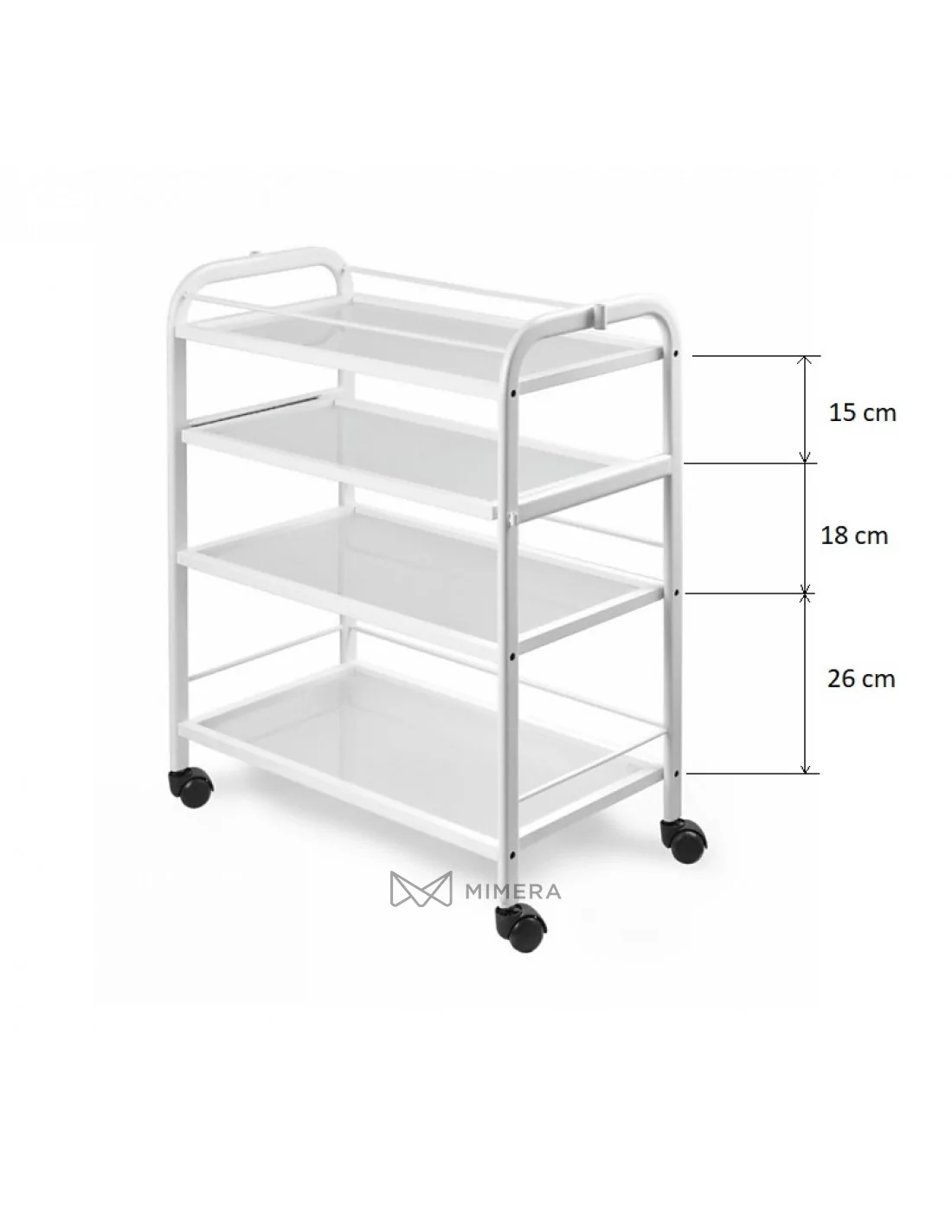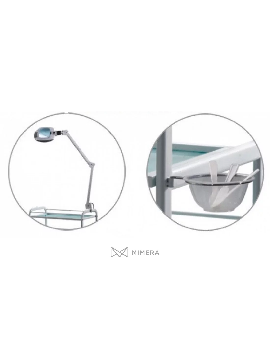 Dieser Kosmetikwagen UNIQUE 2 erleichtert Ihnen den Arbeitsalltag. Neben dem eleganten Design überzeugt er auch durch seine Funktionalität. Er ist klar und bietet ausreichend Platz für Ihre Utensilien. Vier Glasböden ermöglichen eine sehr gute Sortierung der Gegenstände auf dem Tisch. Neben ausreichend Platz bietet der Wagen auch die Möglichkeit, eine Lampe an der Tischstruktur anzubringen.