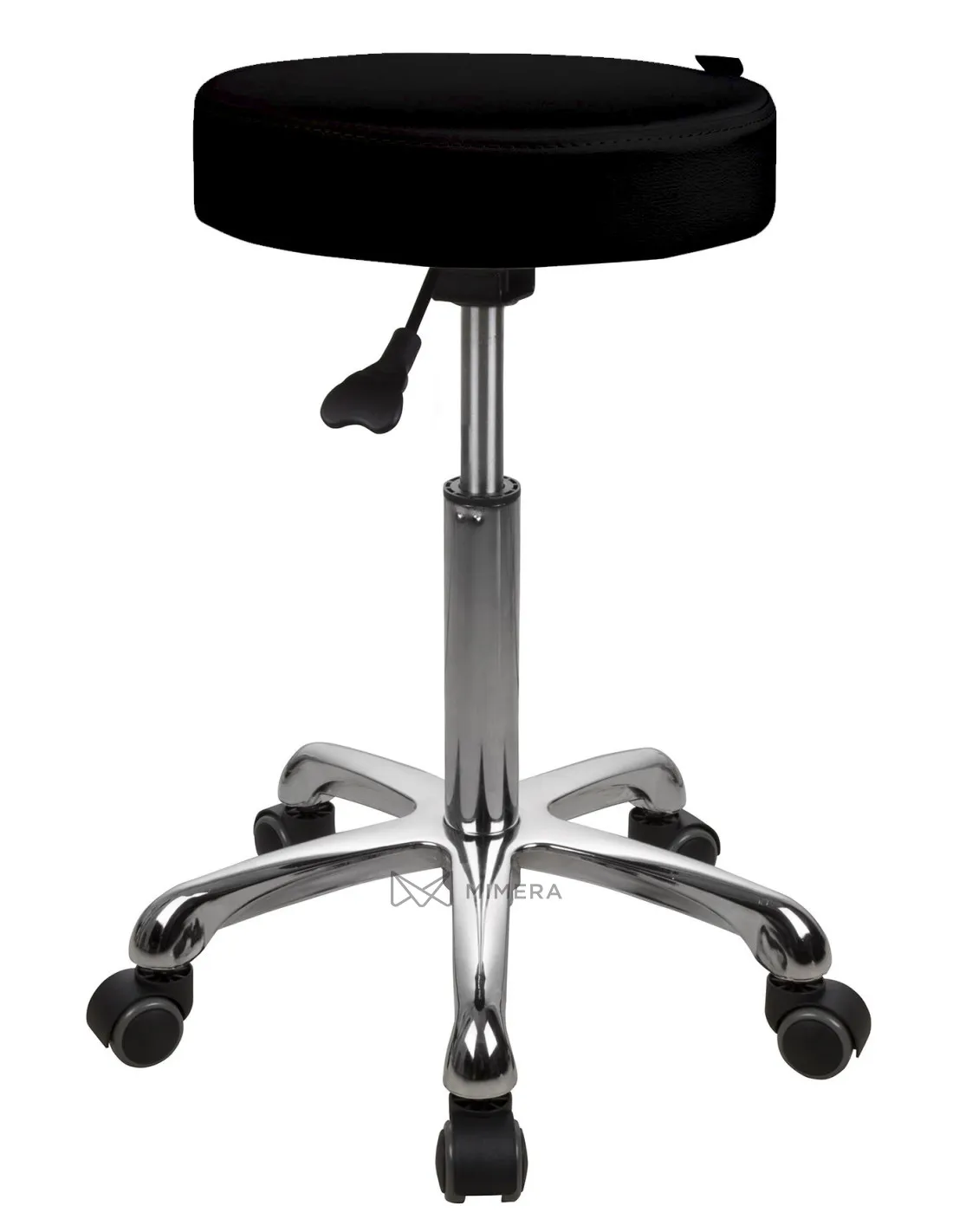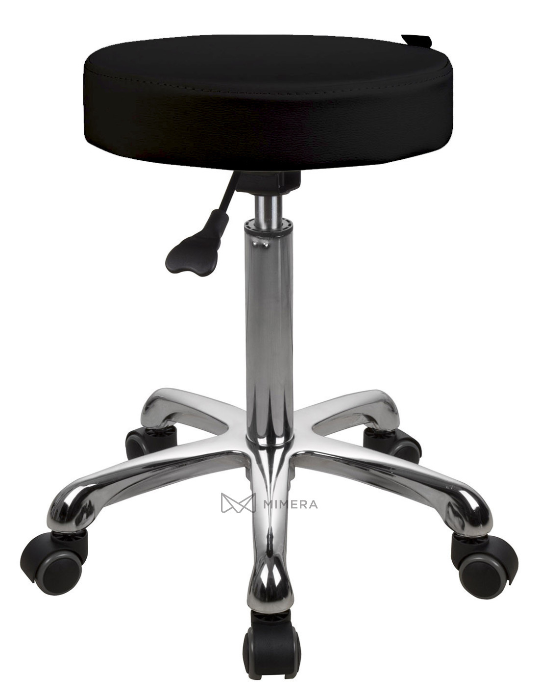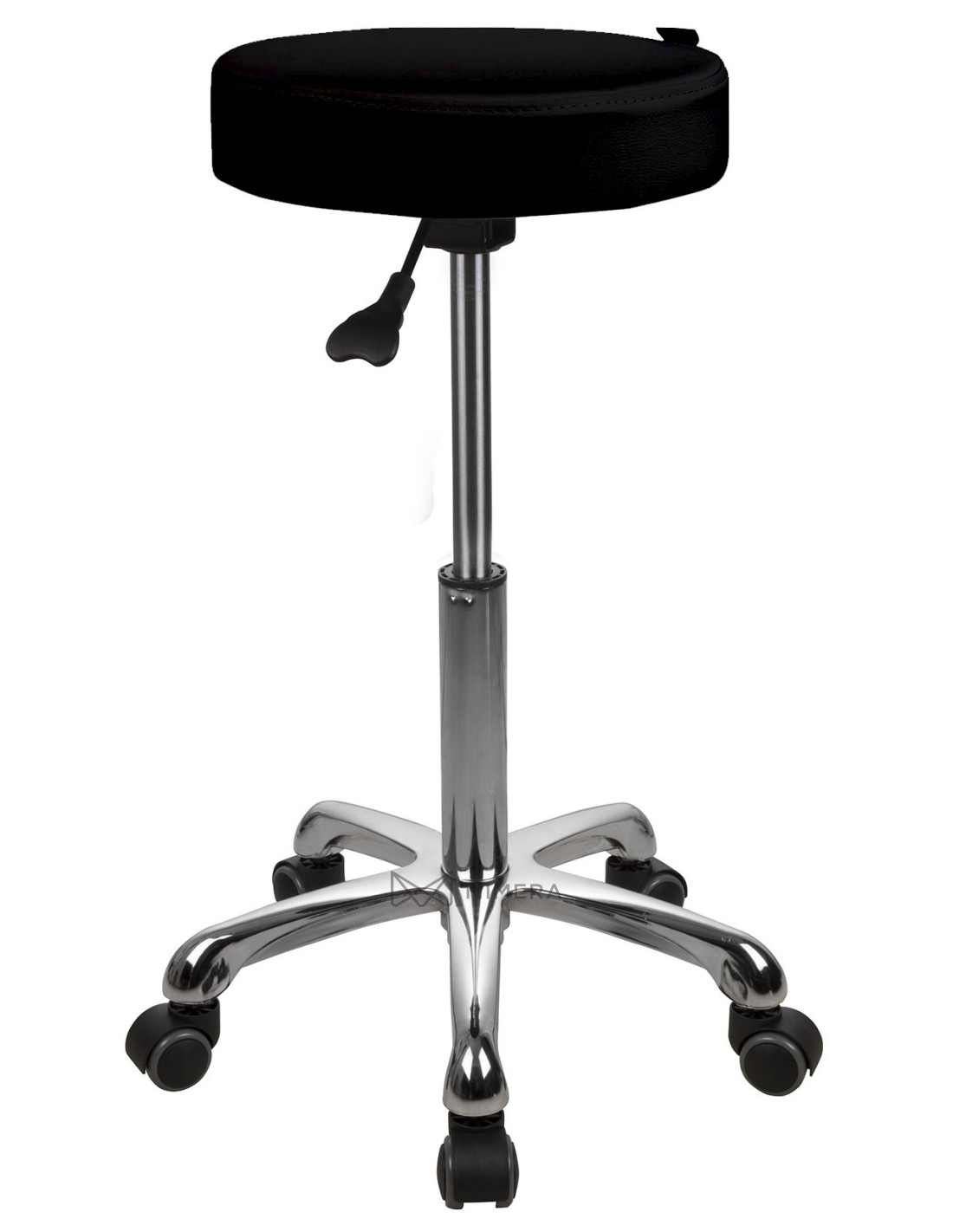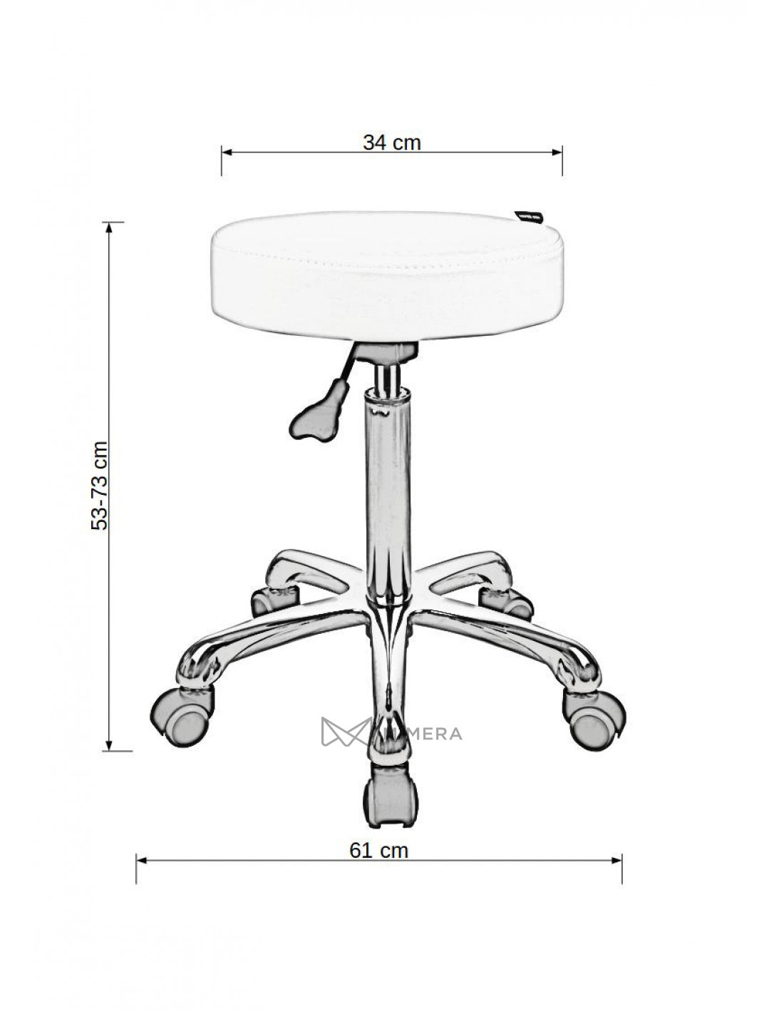 Der praktische Stuhl AMY ist ergonomisch gestaltet und verfügt über eine flache, runde Sitzfläche. Die Höhenverstellung erfolgt über einen Hubmechanismus im Bereich von 53–73 cm. Die hochwertige PU-Polsterung mit einer Dicke von 6,5 cm ist leicht zu pflegen. Fünf Rollen und ein verchromtes Gestell sorgen für ausreichende Stabilität und leichte Beweglichkeit im Raum.