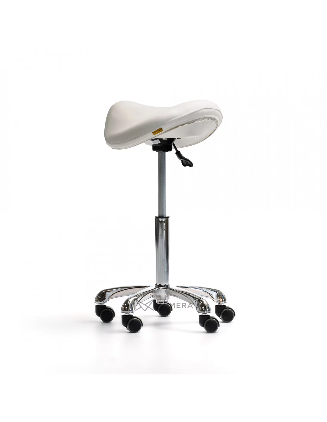 Bequemer, ergonomischer Arbeitsstuhl mit geformtem Sattelsitz sorgt für maximalen Komfort bei der Arbeit.
