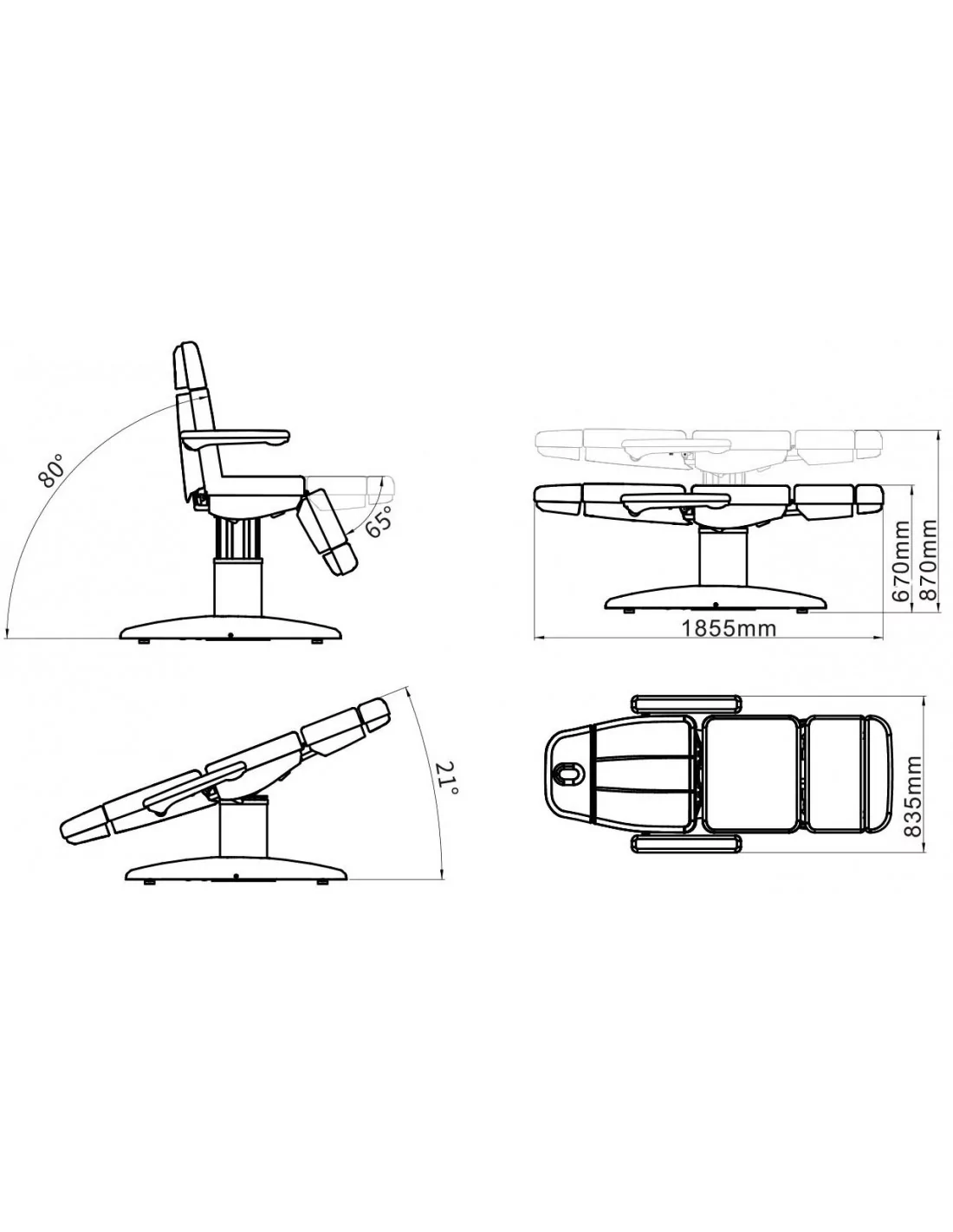 Die exklusive Kosmetikliege MILENA E4 aus der neuen Kollektion von SILVERFOX hat ein wunderschönes minimalistisches Design mit abgerundeten Kanten. Es ist mit vier Motoren ausgestattet, die die Höhe, Rückenlehne, Fußstütze und Neigung der gesamten Liege steuern. Die Steuerung erfolgt über einen Handschalter, der in der Verpackung enthalten ist.