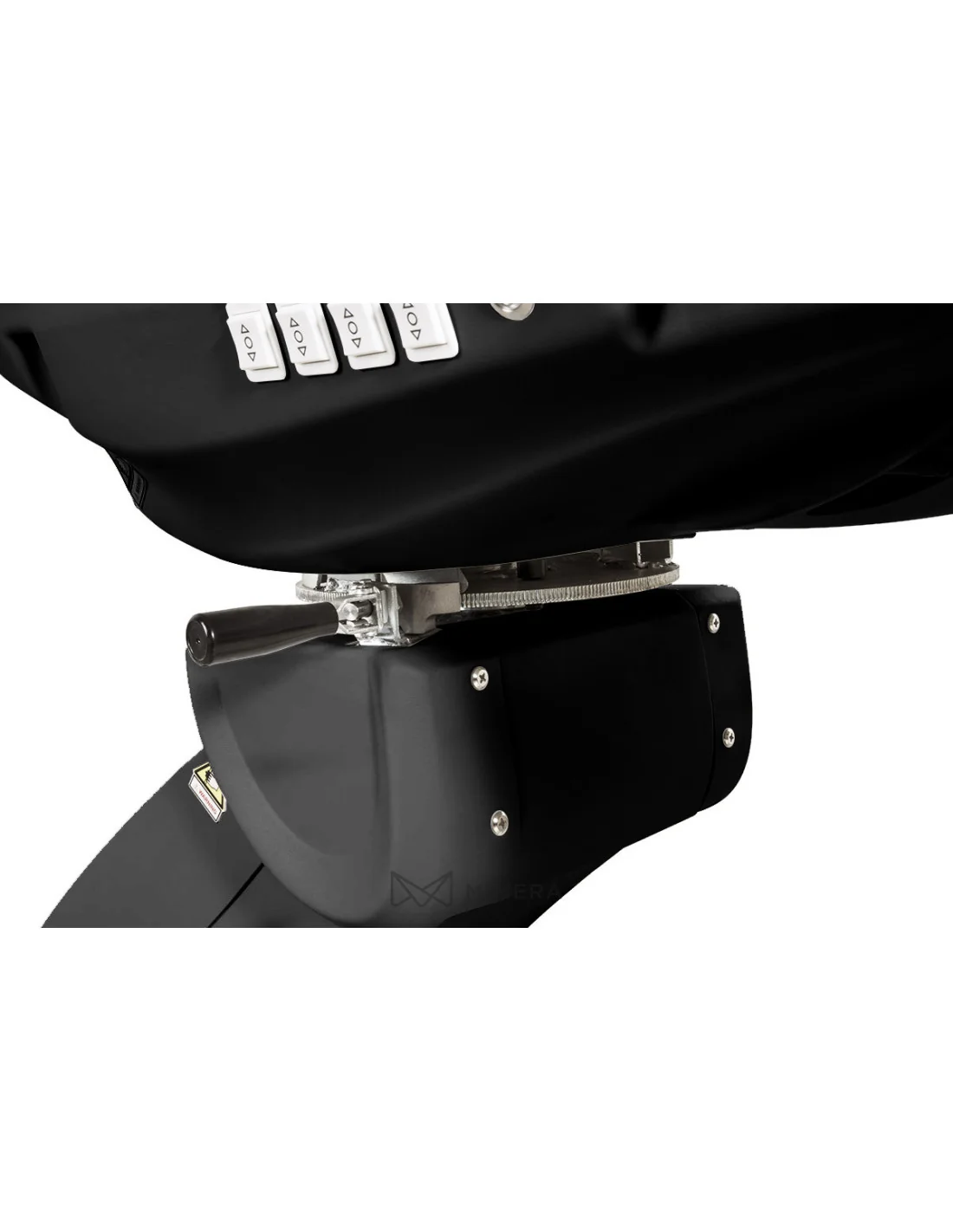 Die Kosmetikliege NICO DELUX PLUS E4 mit Heizung ist einer der wenigen Drehstühle auf dem Markt. Es verfügt über 4 Motoren, die die Höhe, Rücken- und Fußstütze sowie die Neigung der Liege regulieren. Die Einzigartigkeit ist, dass es auf drei Arten gesteuert werden kann. In Rücken und Sitz eingebaute Tasten, Pedalsystem in der Basis und manuelle Steuerung. Es ist auch Teil des Pakets. Mit den beiden Funktionen LOCK und RESET können Sie die eingestellte Position festlegen oder die Liege wieder in die Ausgangsposition bringen.