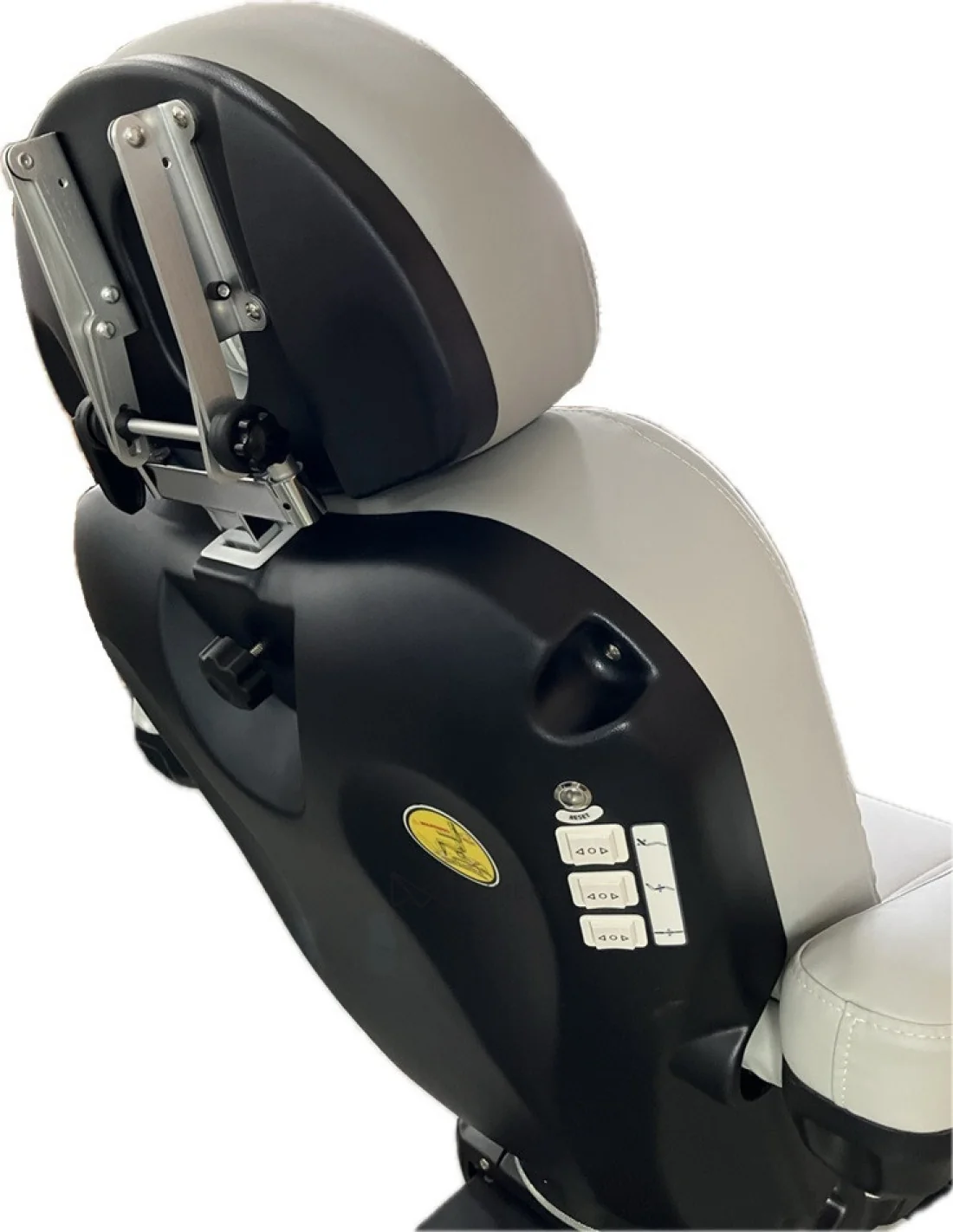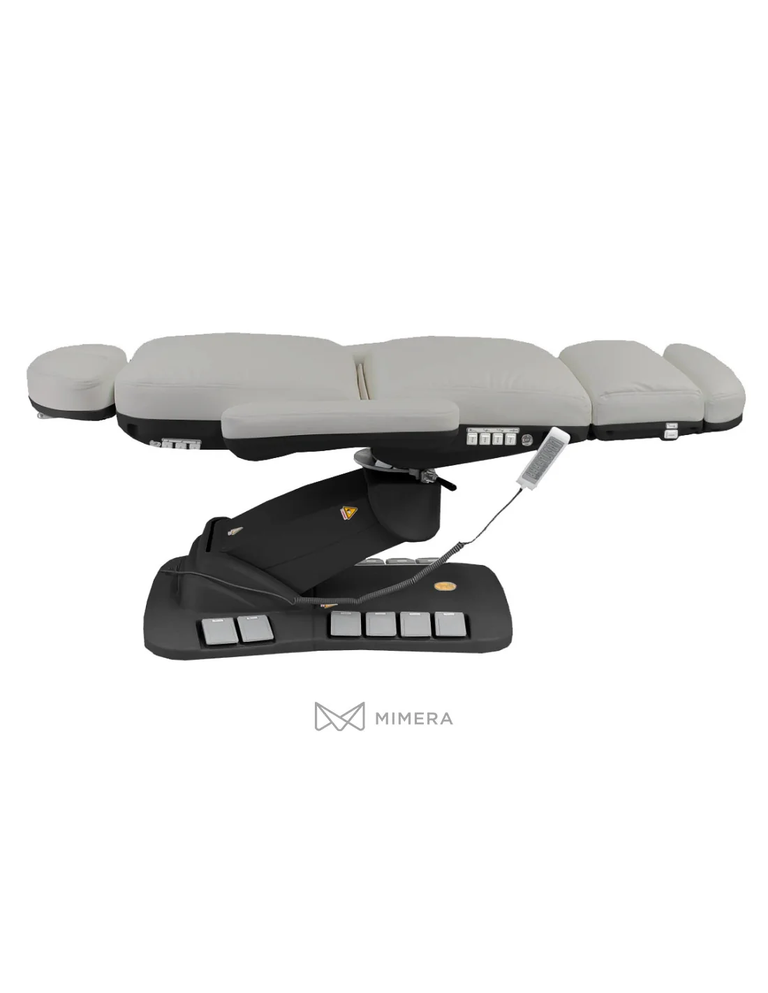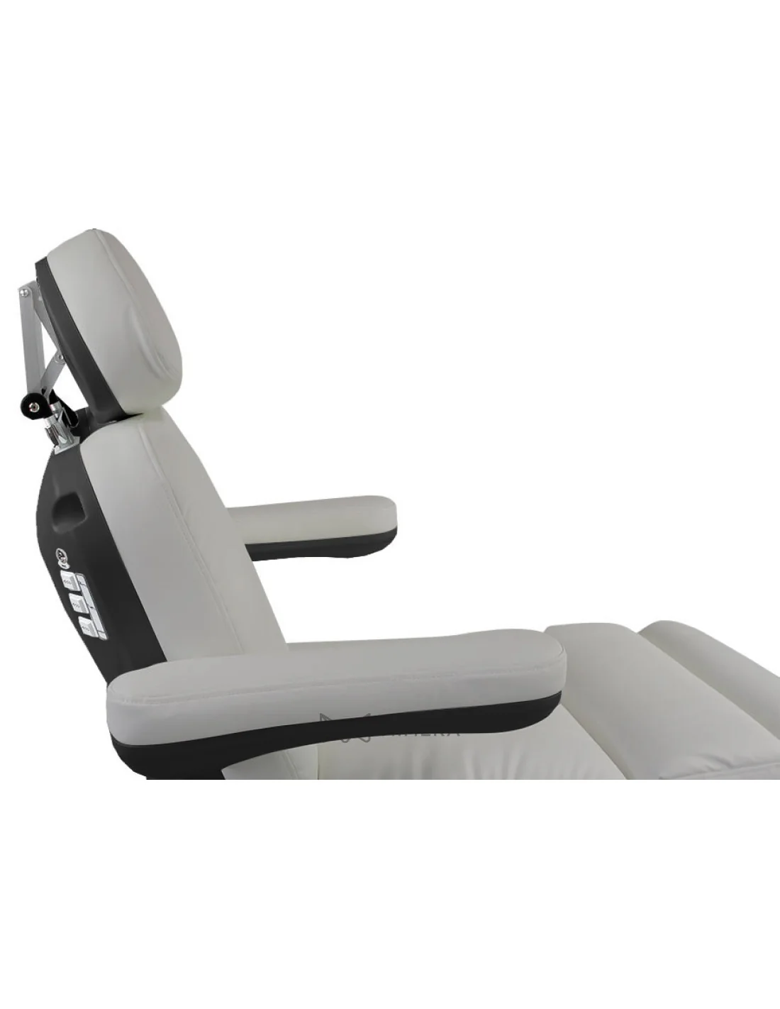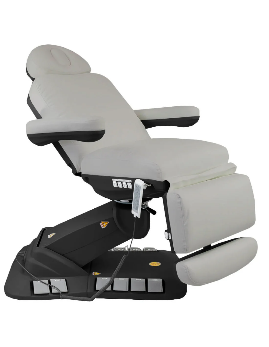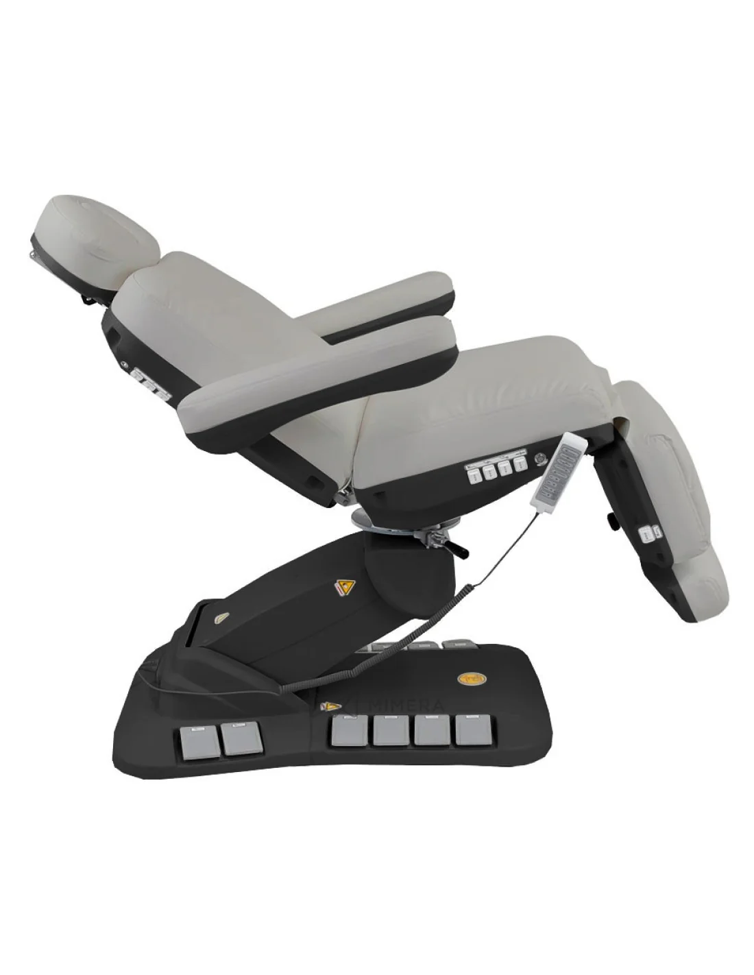 Der NICO DELUX PLUS E4 verfügt über eine integrierte Heizung, die Ihren Kunden eine angenehme Behandlung garantiert. NICO DELUX PLUS E4 ist in einem Winkel (~ 60 ° bis + 60 °) in beide Richtungen drehbar. Die Kopfstütze ist 3D-verstellbar mit einem Ausschnitt für das Gesicht und das Beinteil kann nach Bedarf verlängert werden. Die Armlehnen können zum besseren Zugang zusammengeklappt oder entfernt werden. Die Liege bietet Komfort für die besonders weiche Polsterung aus PU-Mikroleder, die leicht zu pflegen ist.