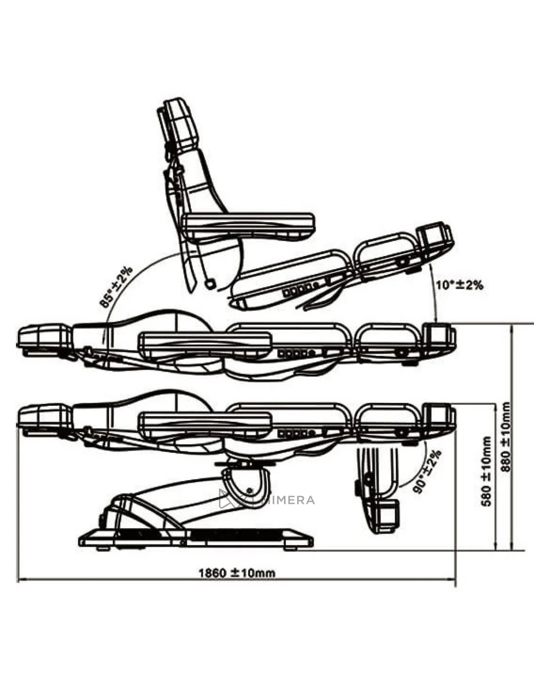 - 4 Motoren zur elektrischen Höhenregelung (58-88 cm), Rückenlehne (0 ° ~ + 85 °), Liege (0 ° ~ + 15 °) und Fußteil (-90 ° ~ 0 °)