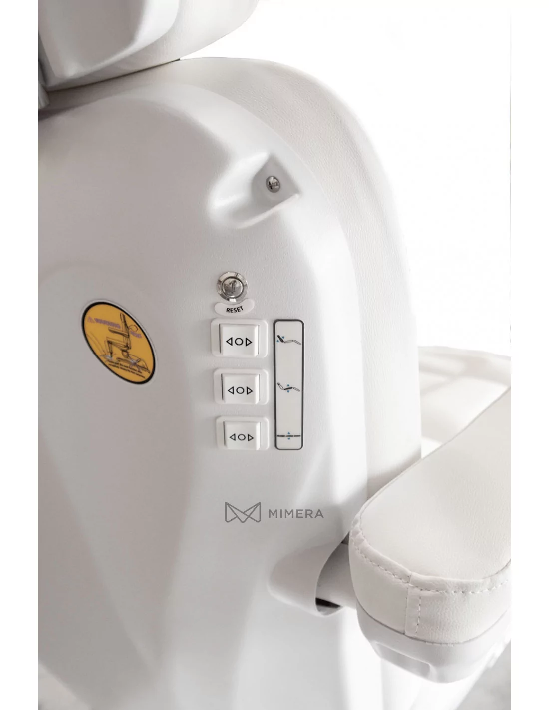Der NICO E3 verfügt über 3 Motoren, die Höhe, Rückenlehne und Sitzneigung regulieren. Die Fußstütze wird manuell gesteuert und hat auch ein ausziehbares Beinteil. Die Liege ist in beide Richtungen um einen Winkel (~ 60 ° bis + 60 °) drehbar. Die Bedientasten befinden sich auf dem Sitz und auf der Rückseite, sodass Sie sie immer zur Hand haben. Dieses Modell ist mit einer RESET-Funktion ausgestattet, um die Liege in ihre ursprüngliche Position zurückzubringen. Die Höhe und Neigung der Kopfstütze kann auch manuell eingestellt werden. Die Kopfstütze hat einen Gesichtsausschnitt, die den Kunden noch besseren Komfort bietet. Abnehmbare und klappbare Armlehnen bieten maximalen Komfort während der kosmetischen Behandlung. Hochwertige PU-Polster sind nicht nur ergonomisch geformt, sondern auch praktisch und leicht zu waschen.