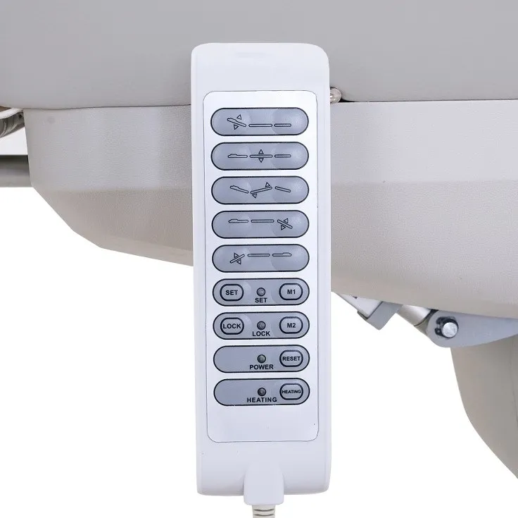 Die wichtigen Vorteile dieser Liege sind die Funktionen RESET, LOCK und Sicherheitssensor. Mit der RESET-Funktion können Sie die Liege auf Knopfdruck wieder in die Ausgangsposition bringen. Mit der LOCK-Funktion können Sie die gewählte Position der Liege fixieren (nur mit der manuellen Fernbedienung möglich).