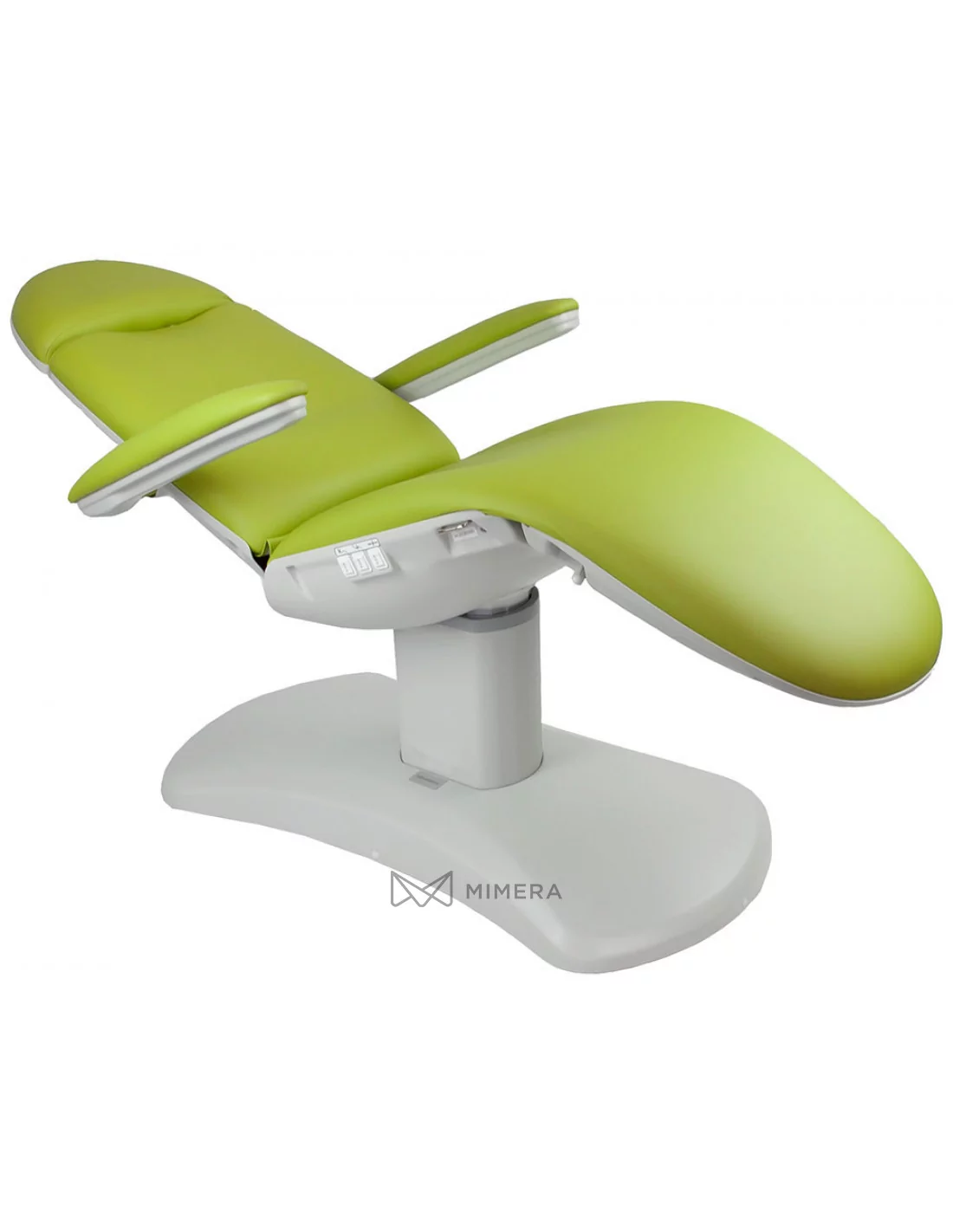 Das Fußteil ist über eine stufenlose Hebel-Pneumatik individuell einstellbar. Die Kopfstütze und Armlehnen werden manuell eingestellt. Der Stuhl verfügt über eine bequeme Polsterung aus strapazierfähigem Kunstleder, die auch die Reinigung erleichtert.