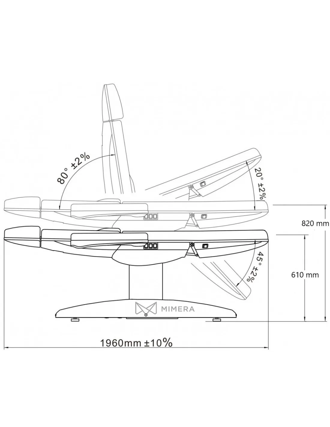 - 3 Motoren für elektrische Höhenkontrolle (61-82cm), Armlehnen (0-80 °) und Neigung (0-20 °)