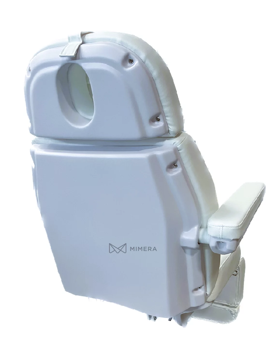 In der horizontalen Position kann sie auch als Massageliege verwendet werden. Die Liege hat ein abnehmbares Kopfkissen und einen Gesichtsausschnitt.
