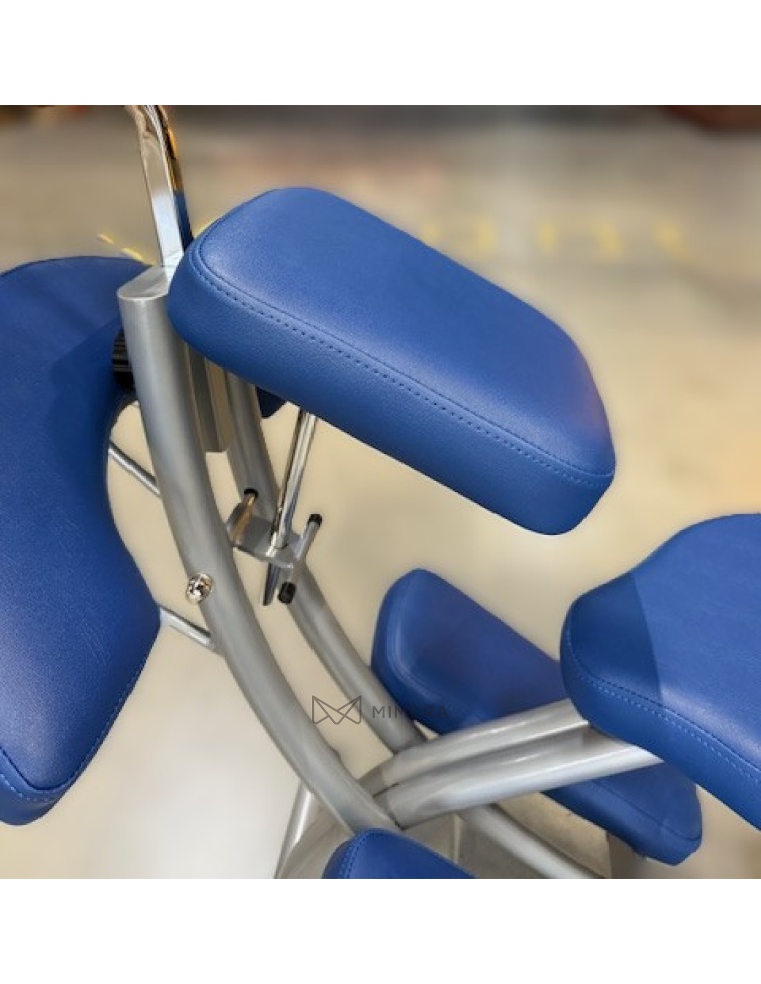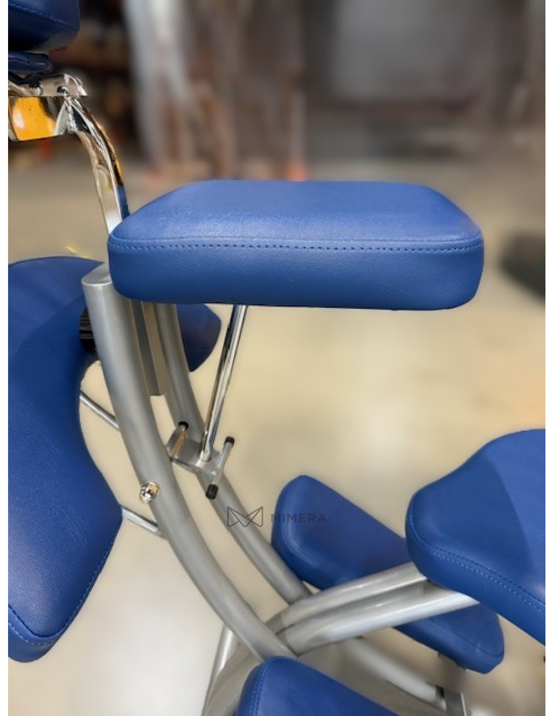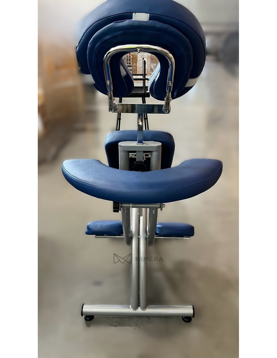 Der Massagestuhl KRISS ist eine kompakte und praktische Ausrüstung, besonders geeignet für Massage-Studenten, mobile Therapeuten oder als einfacher Massagestuhl im Studio. Er bietet eine bequeme Stütze für den Kunden in vorgebeugter Sitzposition. Dank der verstellbaren Höhe und Neigung einzelner Elemente lässt sich der Stuhl an unterschiedliche Körpergrößen anpassen. Die Konstruktion ist leicht, stabil und einfach zusammenklappbar – ideal für den häufigen Transport.