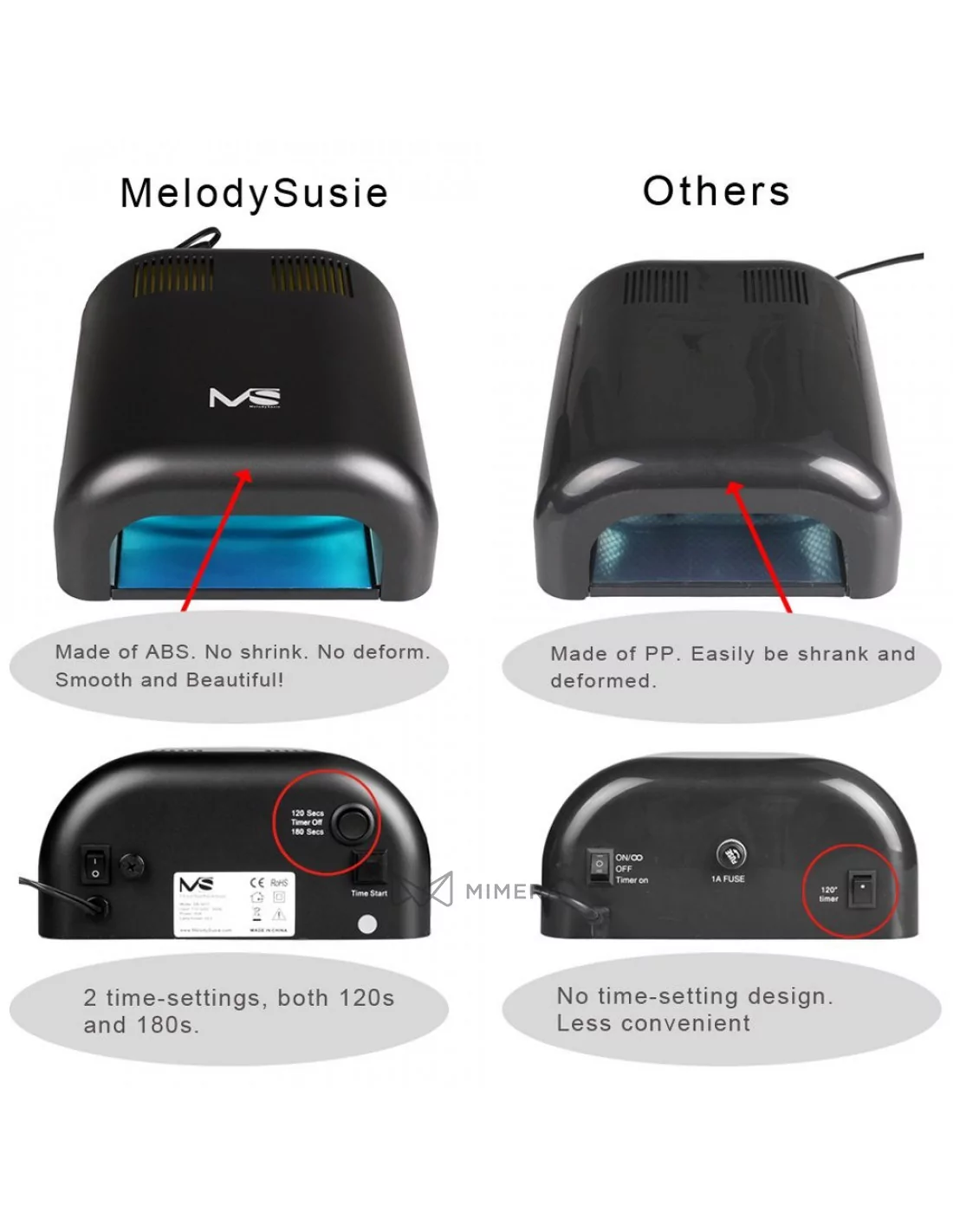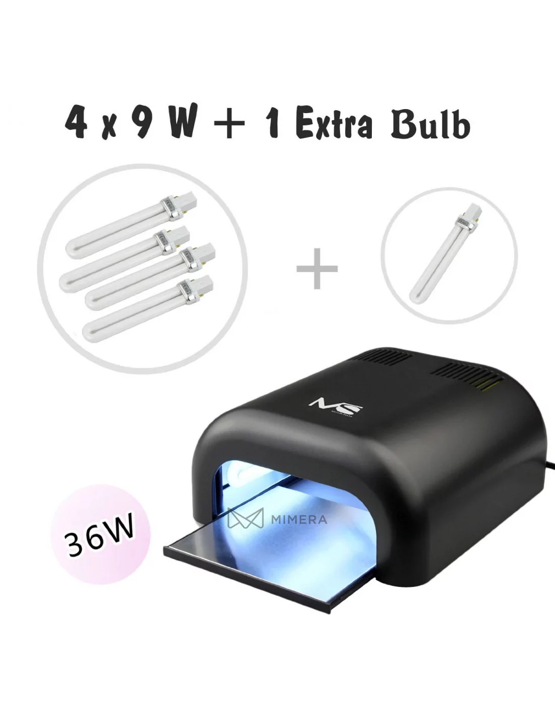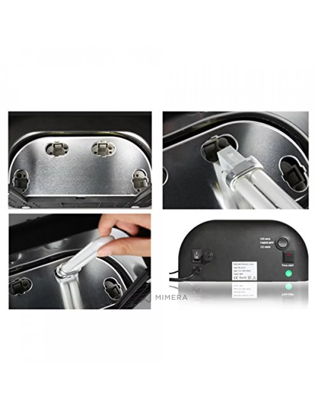 Dieses professionelle 36W UV Gerät verfügt über vier eingebaute 9W UV- Lampen sowie eine Ersatzlampe zum Austausch. Ein integrierter Timer stellt sich automatisch nach gewünschter Zeit von 120 oder 180 Sekunden ab und ermöglicht so ein besonders effizientes Arbeiten. Die hohe Leistungsstärke des PL UVA Lichts lässt Nägel besonders schnell und schonend trocknen und schafft den perfekten Salonlook.