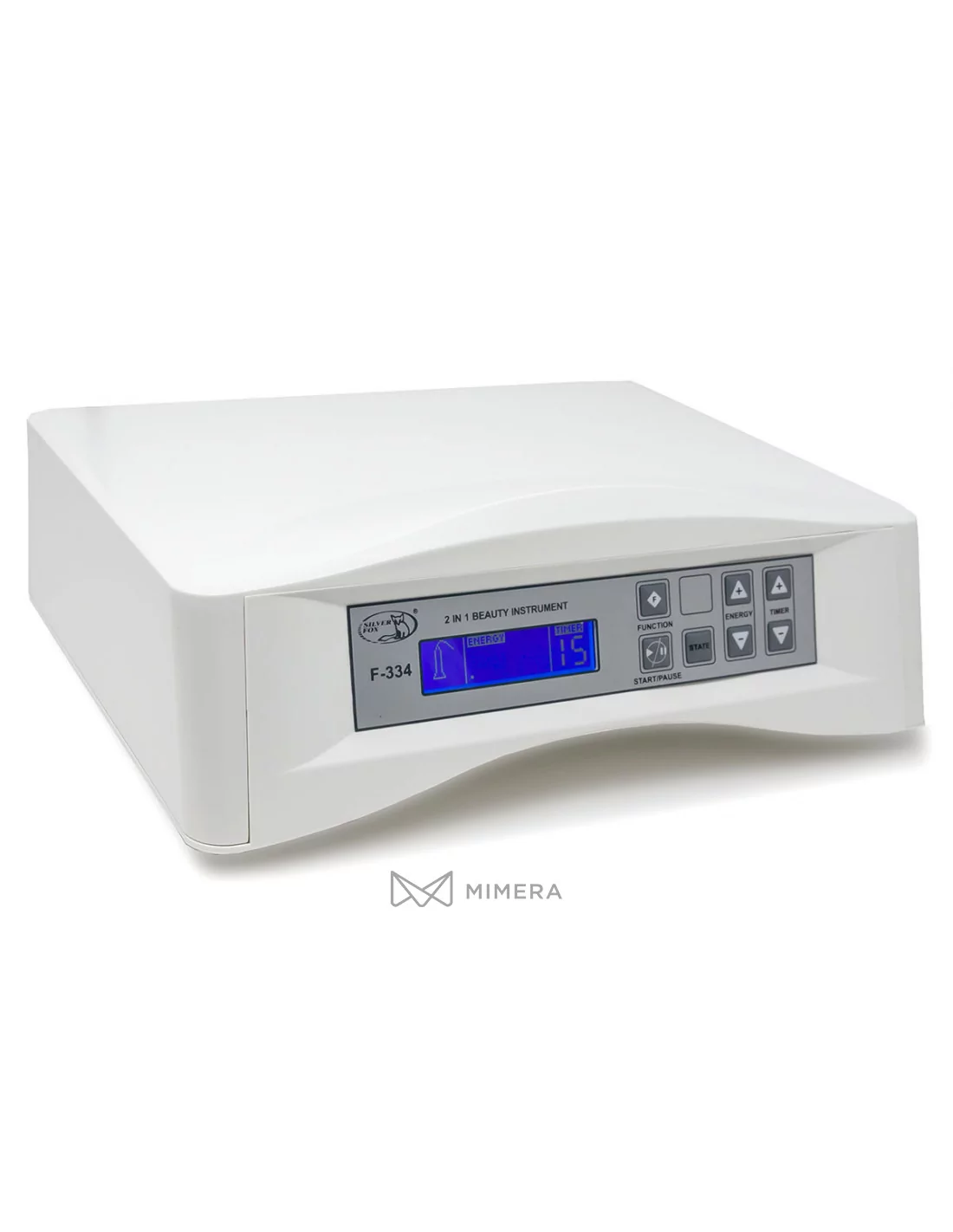 Das multifunktionale Kosmetikgerät F-334 kombiniert zwei Funktionen: Diamant-Mikrodermabrasion und Ultraschallspatel \"Skin Scrubber\".