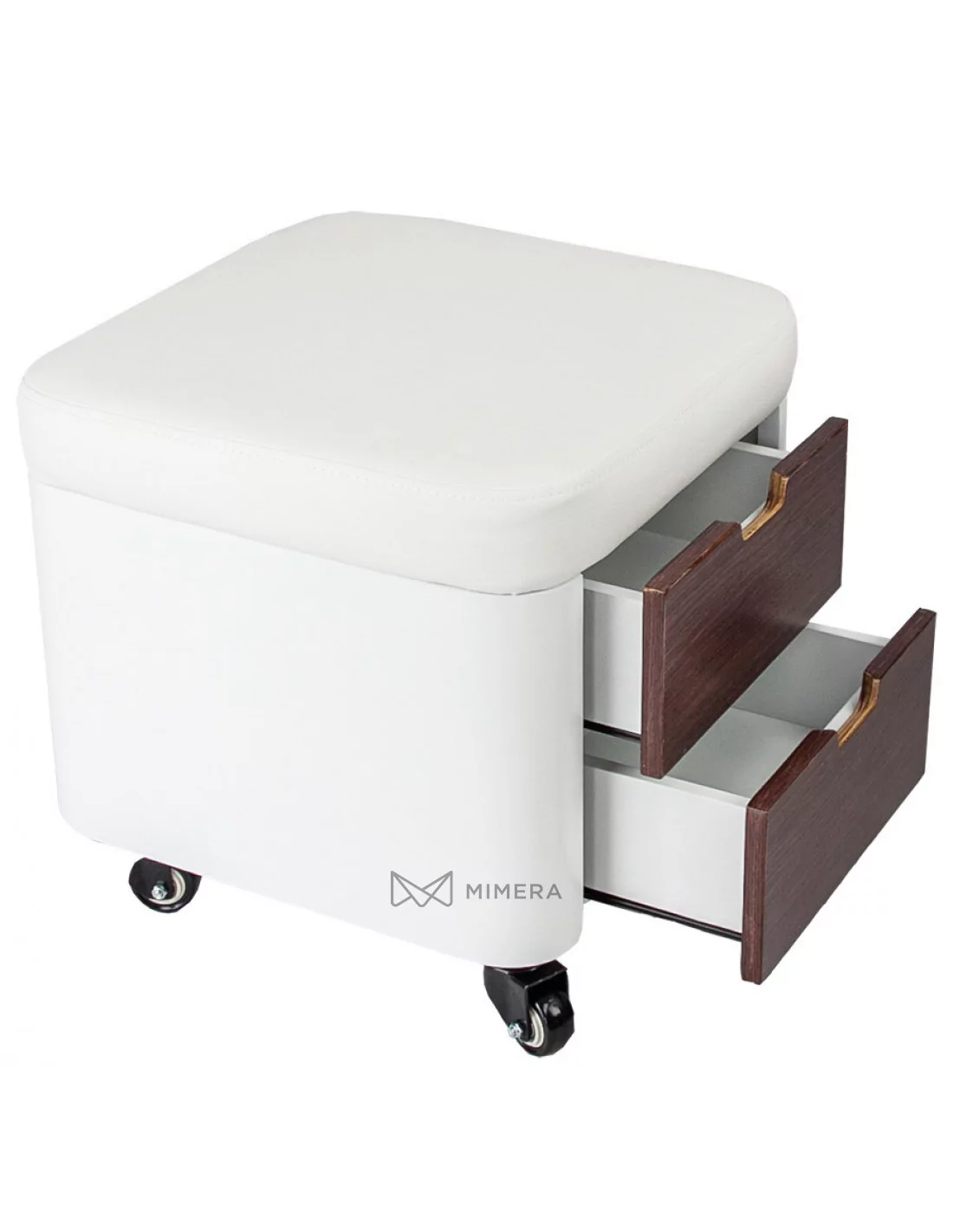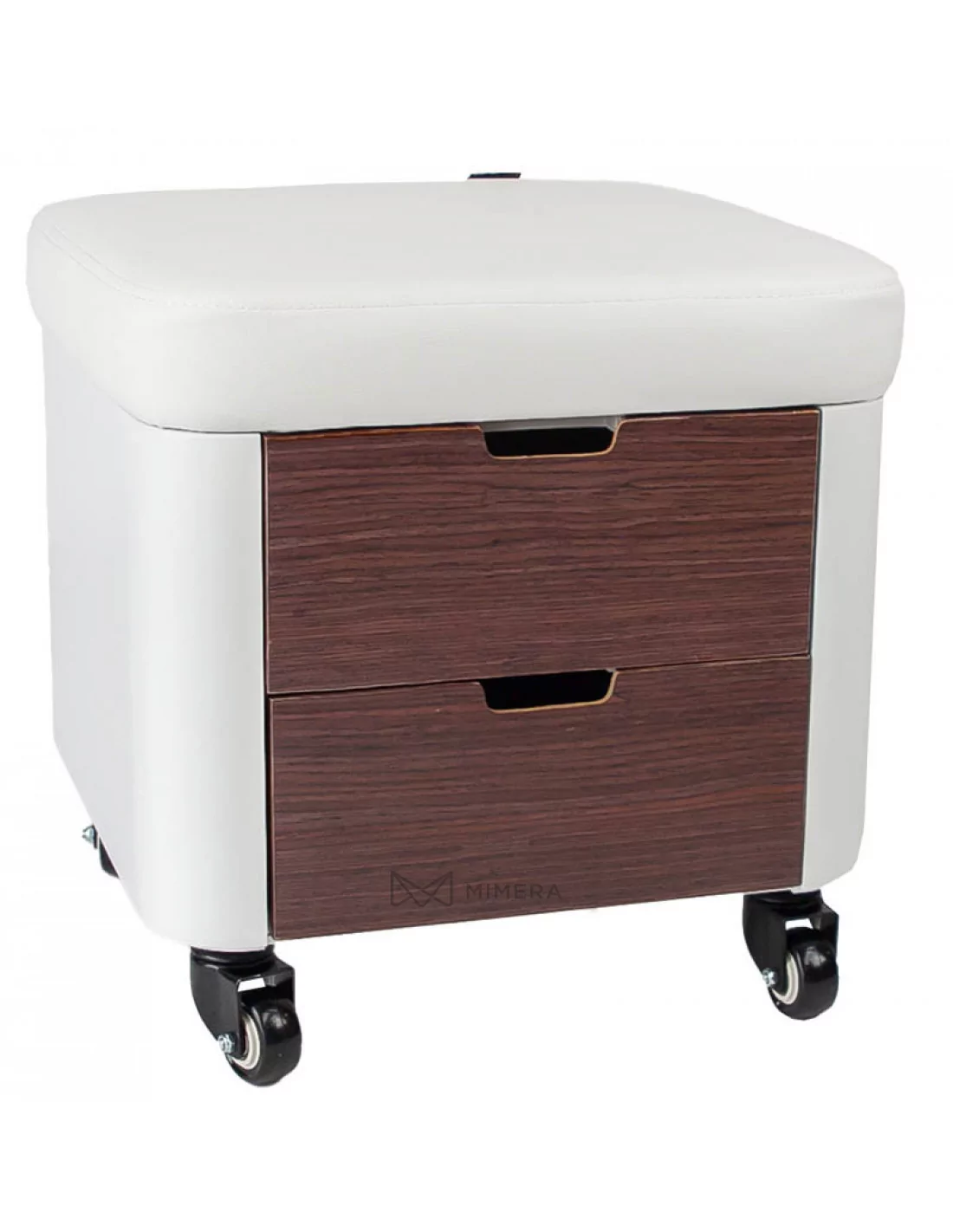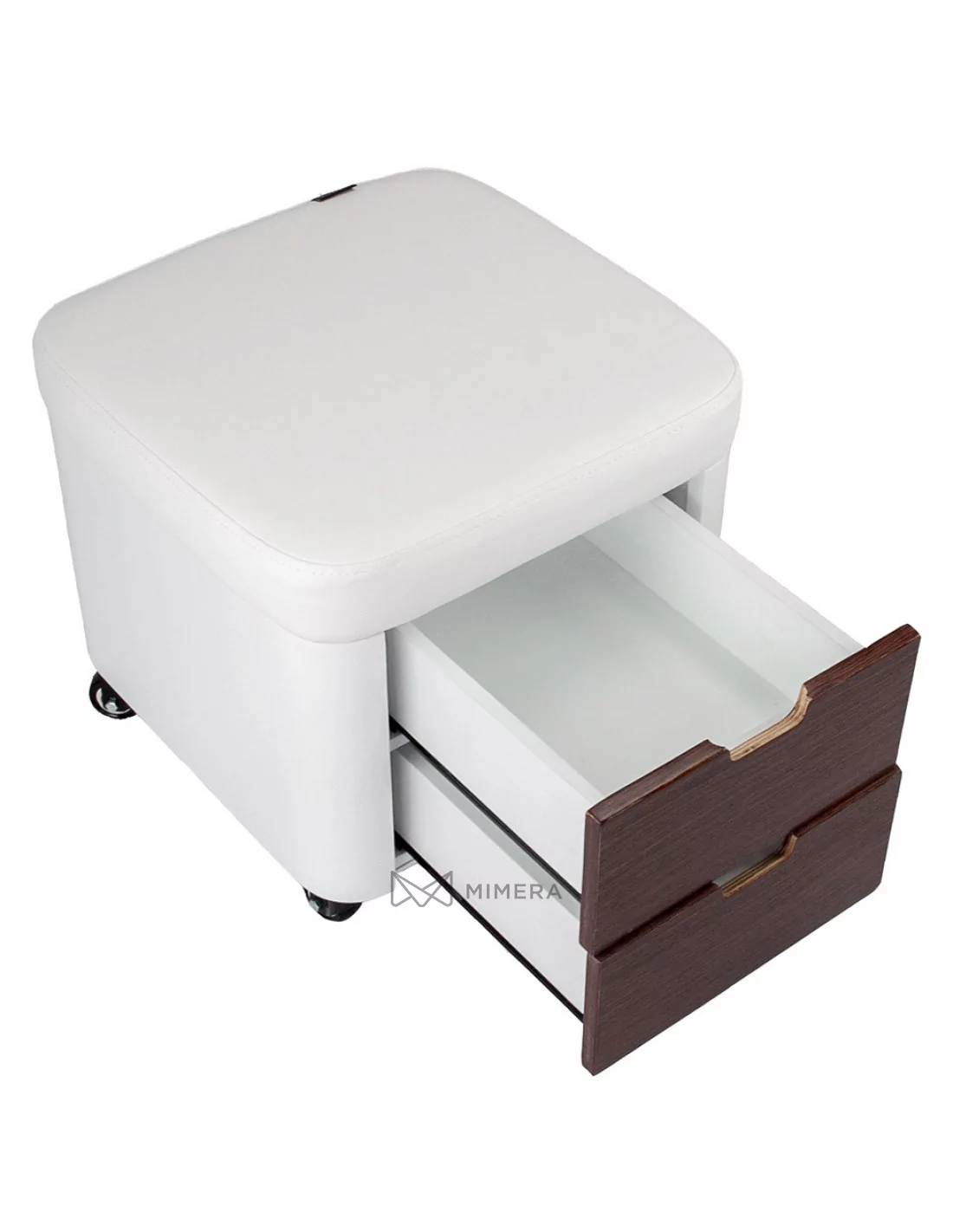 Dieser STORE SANDAL Kosmetikstuhl wurde speziell für eine Pediküre entwickelt. Zwei Schubladen sind sehr praktisch für die Aufbewahrung von Kosmetika und Werkzeugen für Podologen. Der untere Teil ist mit Rädern ausgestattet, um die Bewegung im Salon oder Spa zu erleichtern.