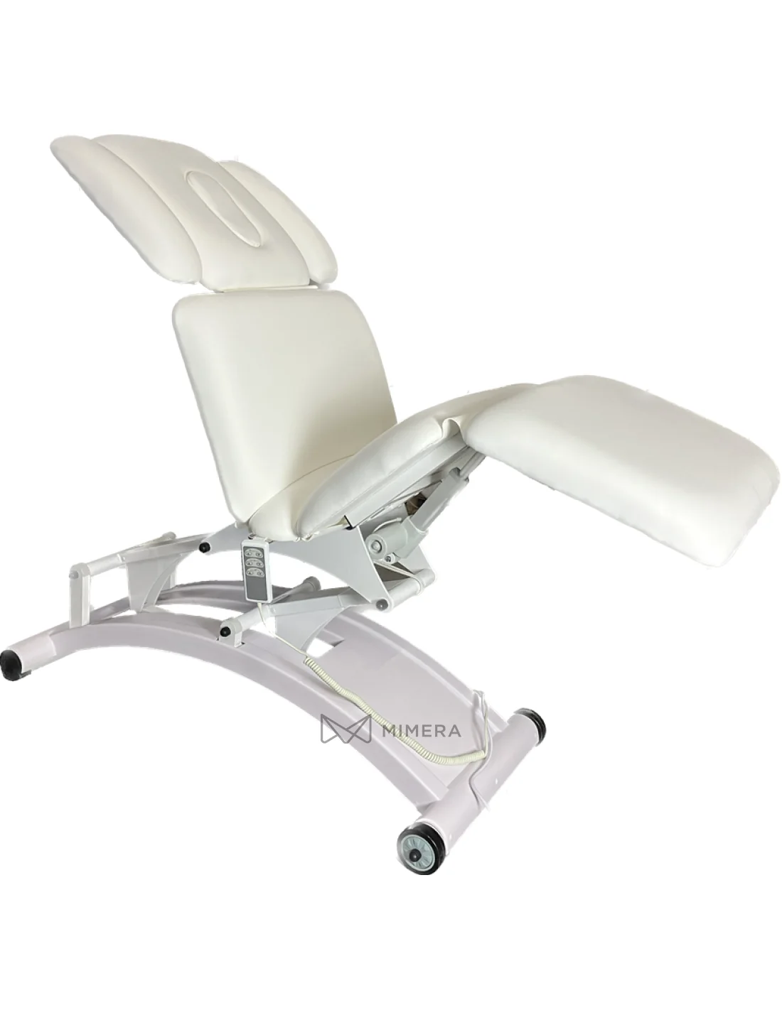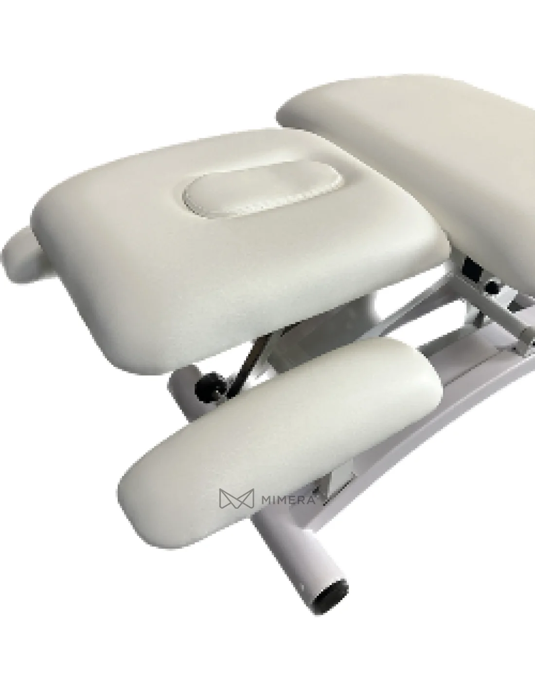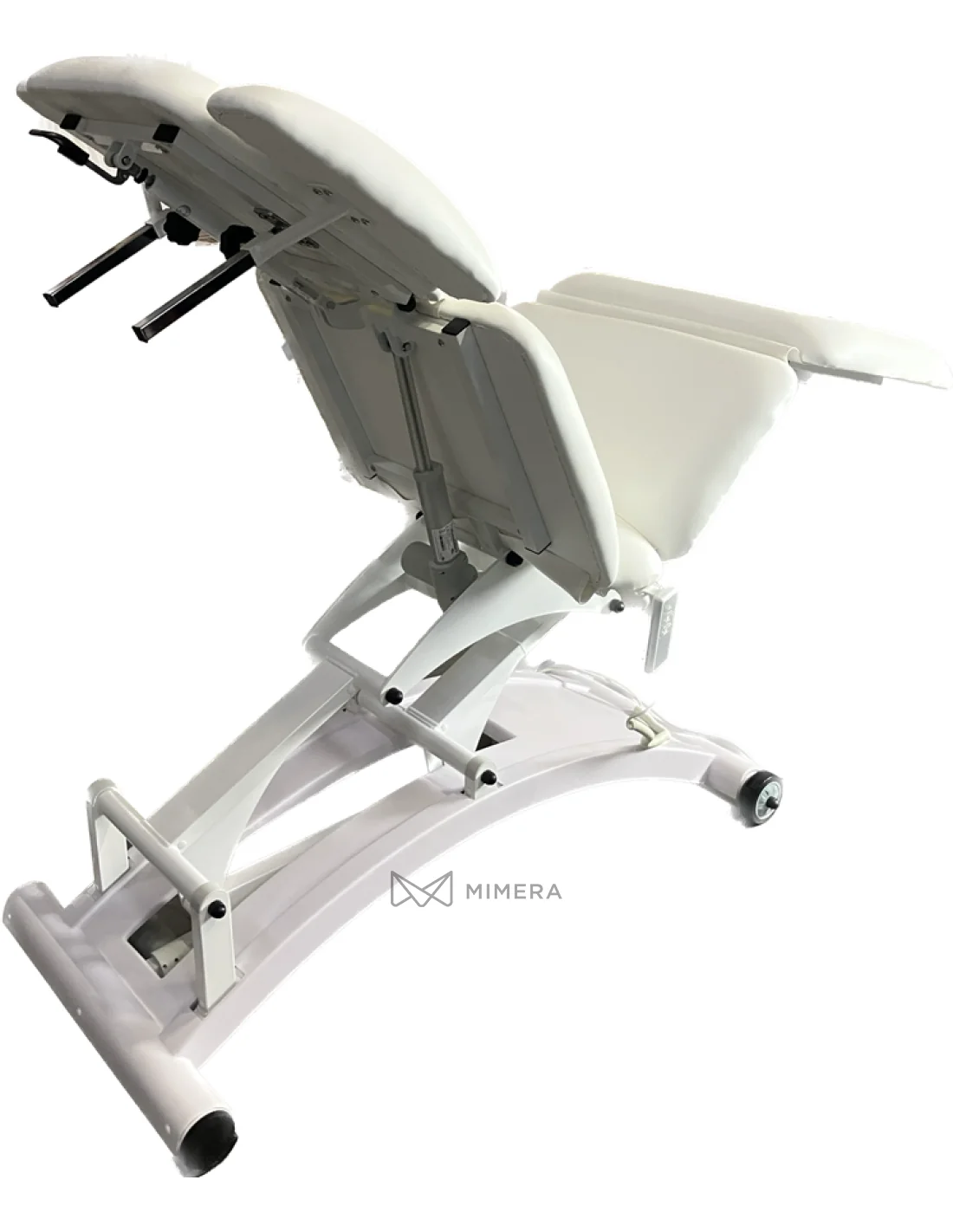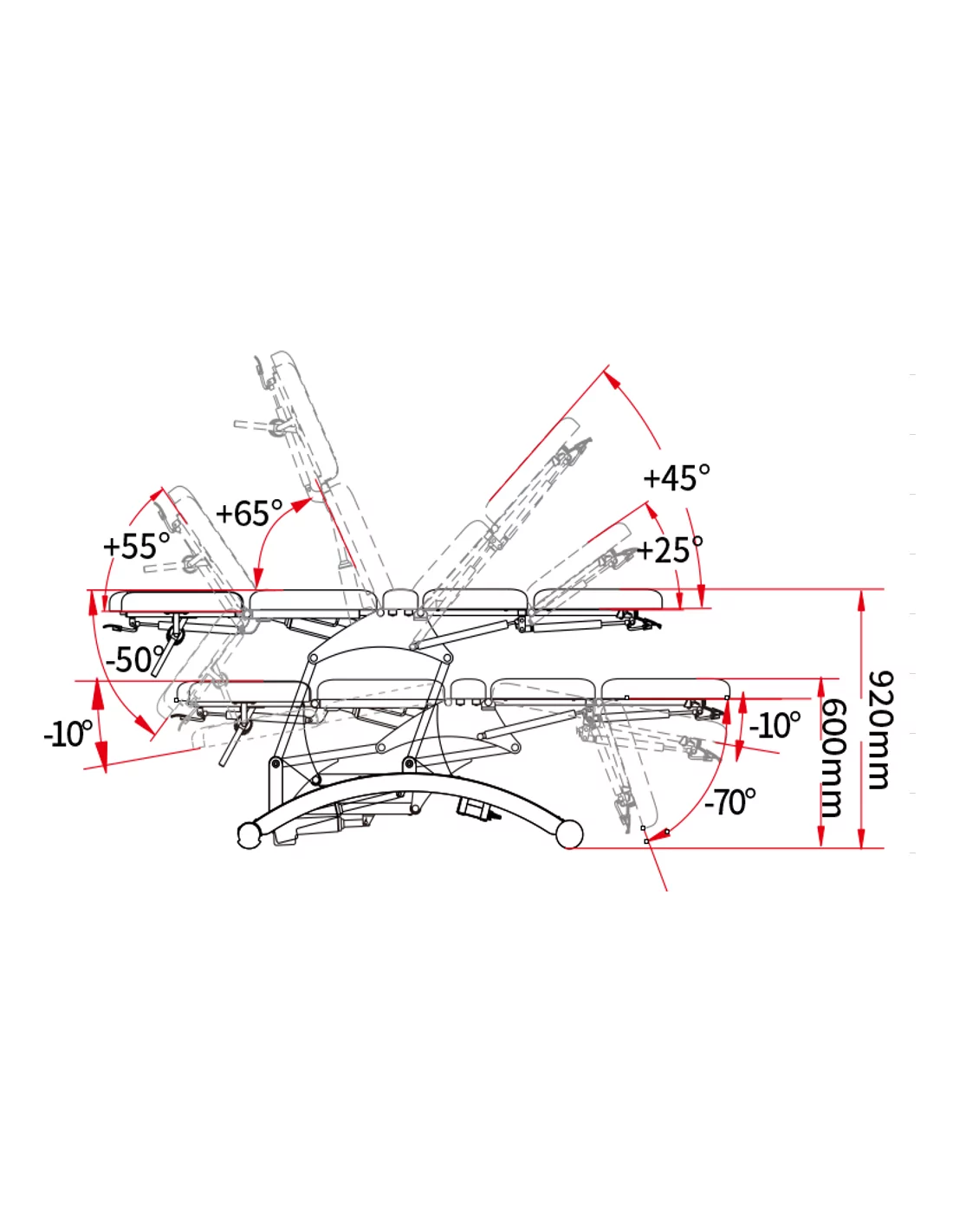 Das Kopf- und Fußteil der Liege wird manuell über Hebel mit hydraulischen Dämpfern eingestellt. Die Liege verfügt außerdem über verstellbare Armlehnen, die Ihnen und Ihren Kunden die richtige Oberkörperposition bieten.