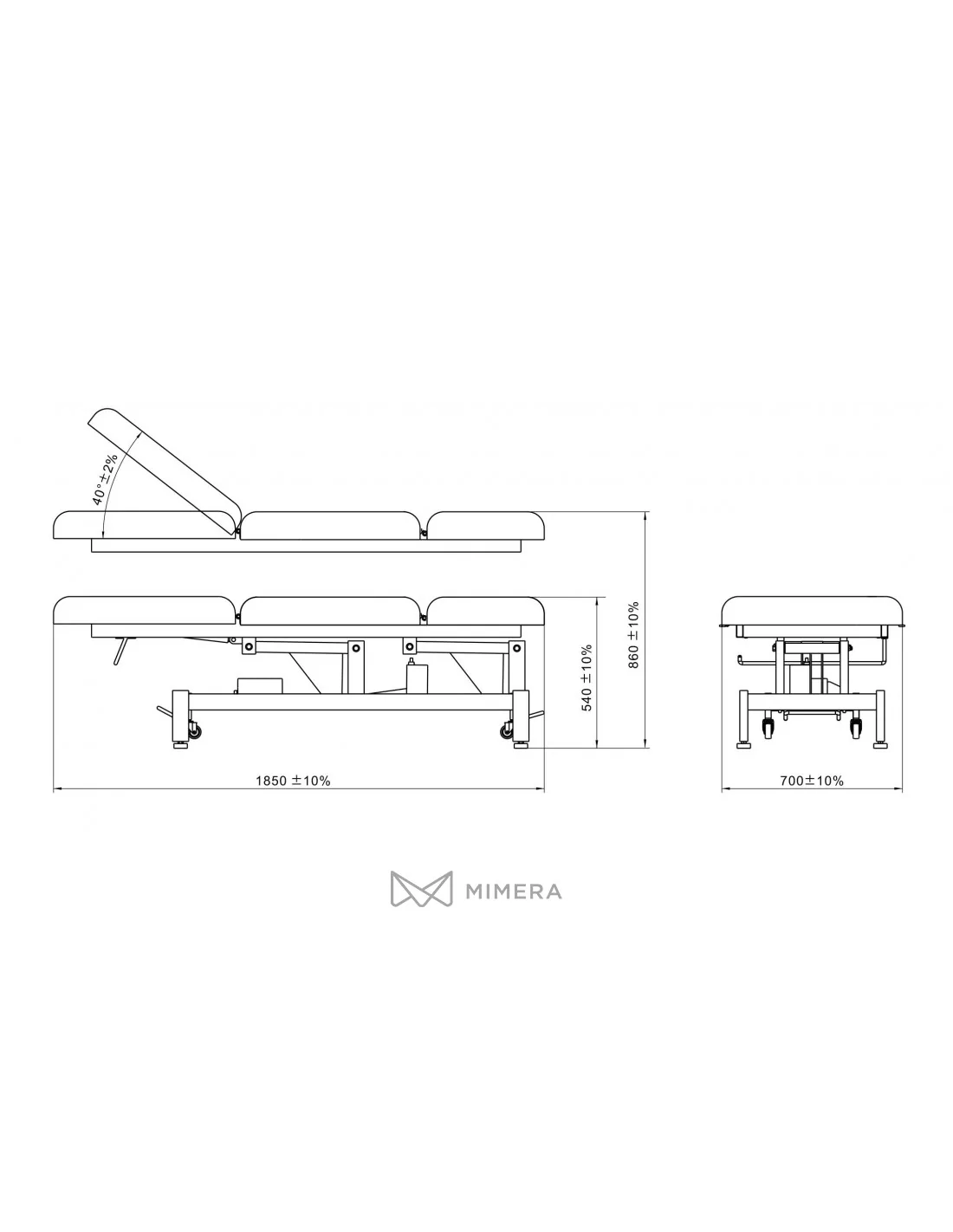 Die universelle Physiotherapeutische Liege EMERY SPLIT E1 ist eine dreiteilige Liege mit einzigartigem Design. Die Liege ist mit einem Motor zur Höhenverstellung ausgestattet, der mit einem manuellen Fernhandbedienung gesteuert wird, die der Bestandteil des Pakets ist. Die Kopfstütze und das Fußteil werden manuell mit pneumatischen Hebeln eingestellt. Die Liege enthält ein Kissen, das kann man entfernen und somit den Gesichtsausschnitt benutzen.