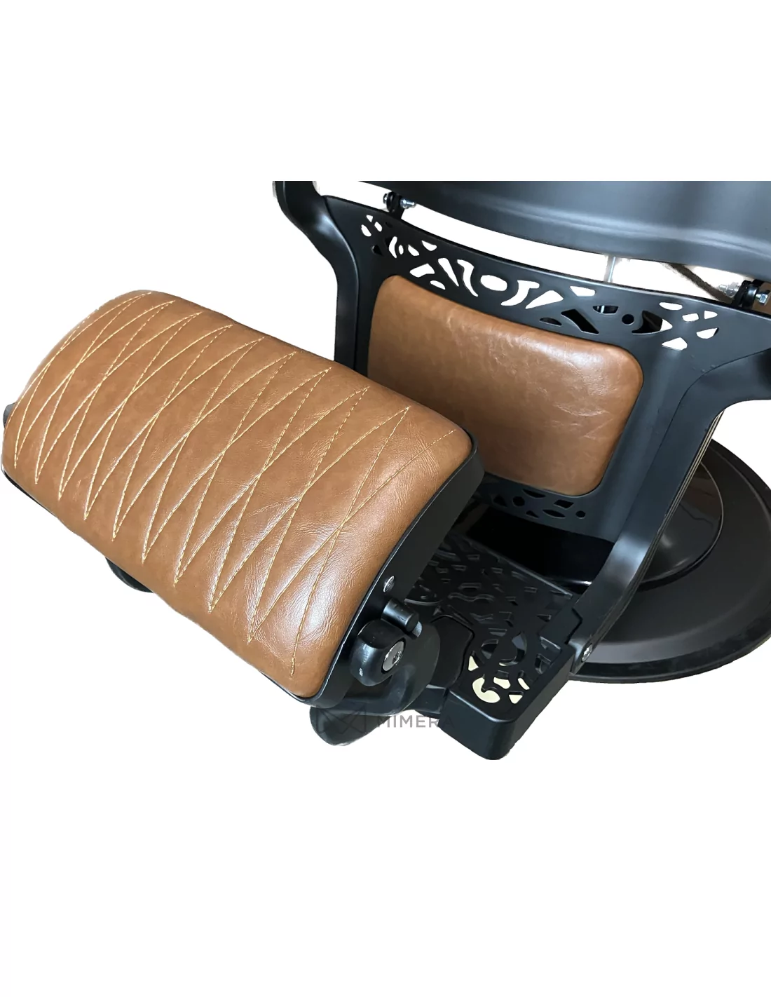 Der Barberstuhl CEZANNE BLACK ist ein echtes Meisterwerk. Sein massiver Edelstahlkörper in Mattschwarz mit einer großen massiven Basis ist extrem stabil und gut ausbalanciert.