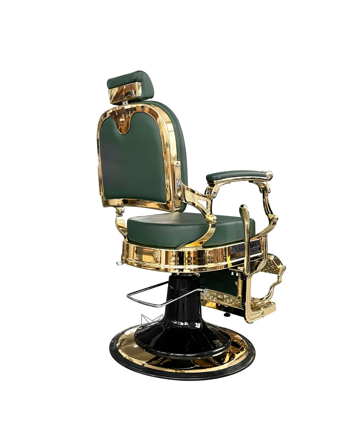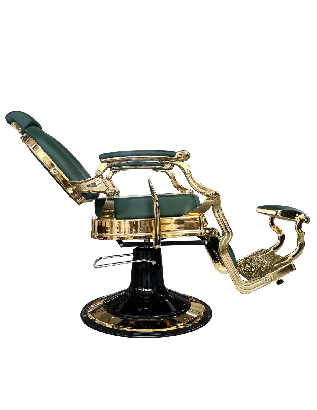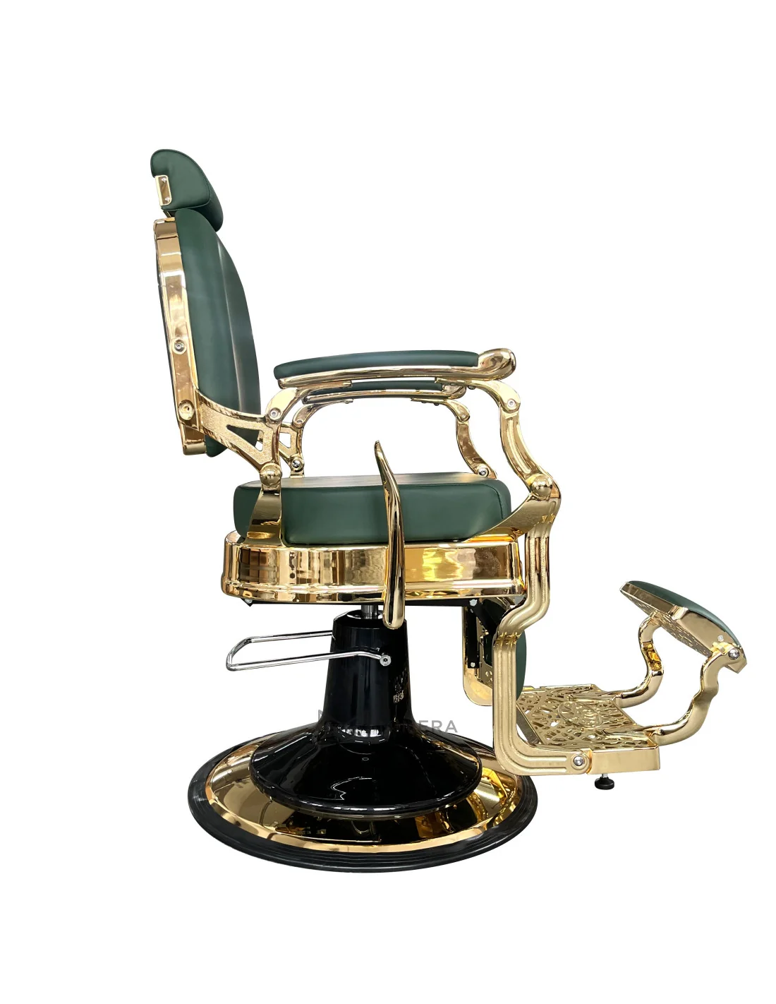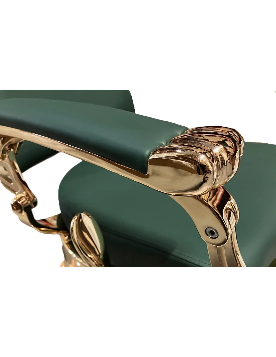 Retro Barberstuhl CEZANNE LUX GOLD - samt grün