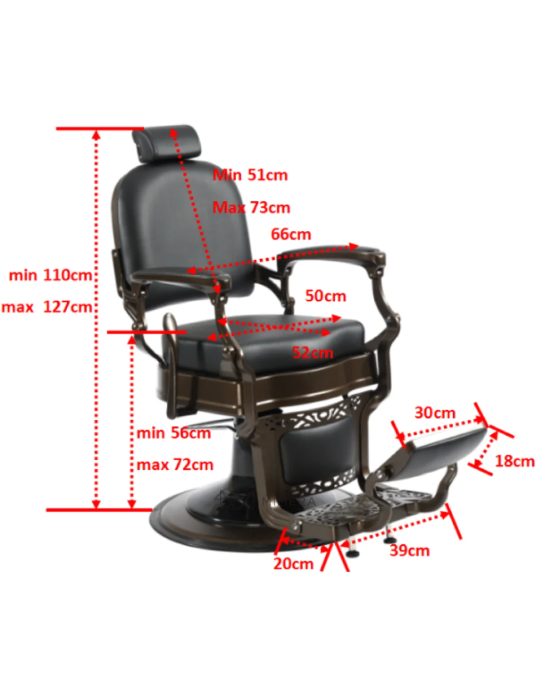 Der Retro Barberstuhl CEZANNE LUX GOLD ist ein echtes Meisterwerk. Sein massiver Edelstahlkörper in Gold mit einer großen massiven Basis ist extrem stabil und gut ausbalanciert.