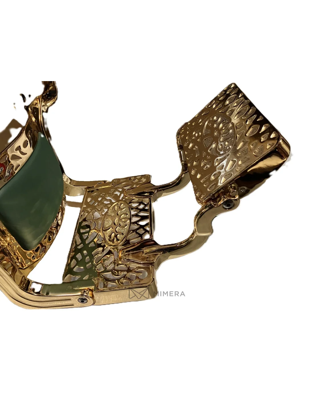 Stahlrahmen in der Gold kombiniert mit mit samtiger grüner Polsterung bildet die perfekte Verbindung von modernem und Retro-Style.
